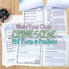 Make your own crime scene with these printable sheets. The sheets included will have you fill out victim statements, witness statements, suspects, details of the crime scene, and sketches if you are the one creating the crime scene. If you are the "detective" you will review the crime scene and follow the Detective's 5 steps while you fill your own sheets to narrow down the prime suspect, figure out the motive, and find out how the suspect perpetrated the crime. The "detective" will process the crime scene to get to find out who dunnit!