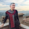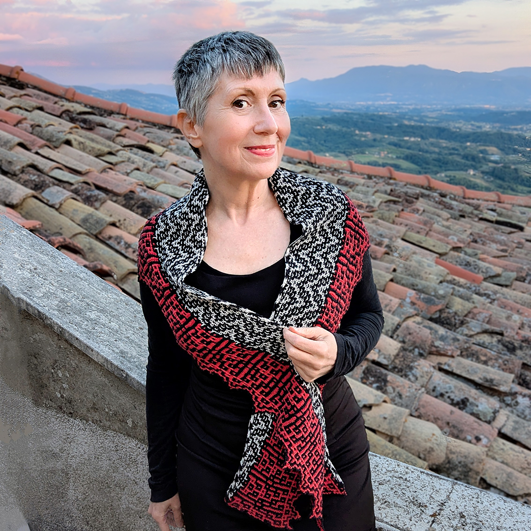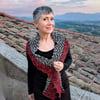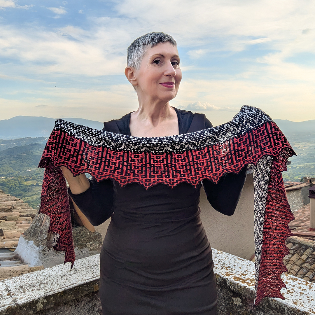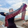 Easy to knit, meaningful to wear: this shawl grows from simple garter stitches into a sweeping crescent, finished with a bold, geometric edge that adds movement and contrast.
