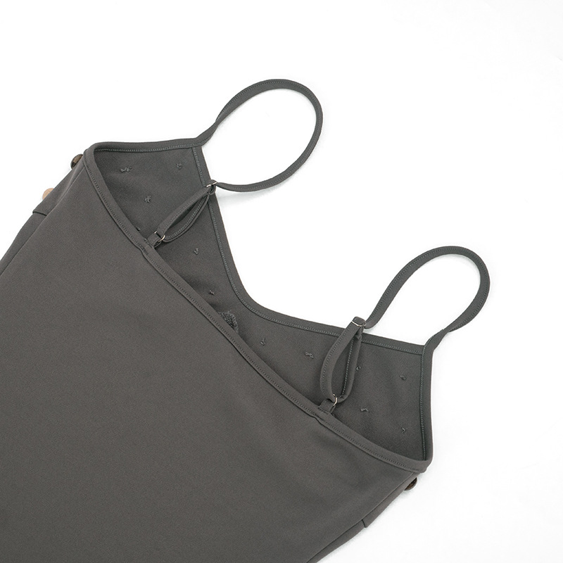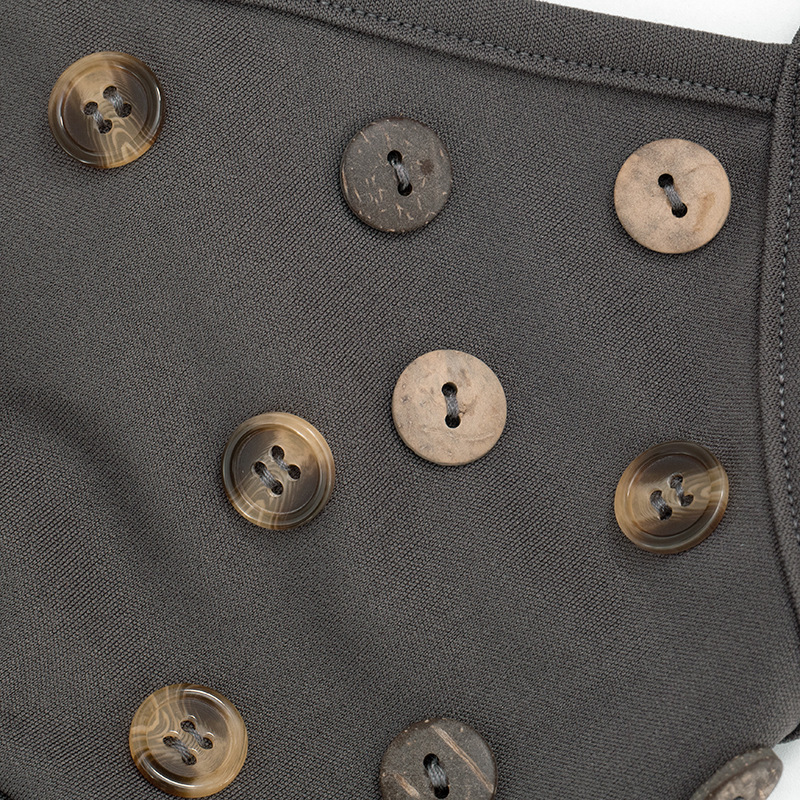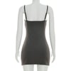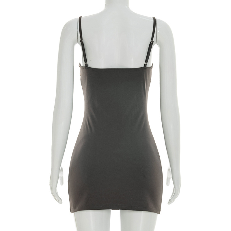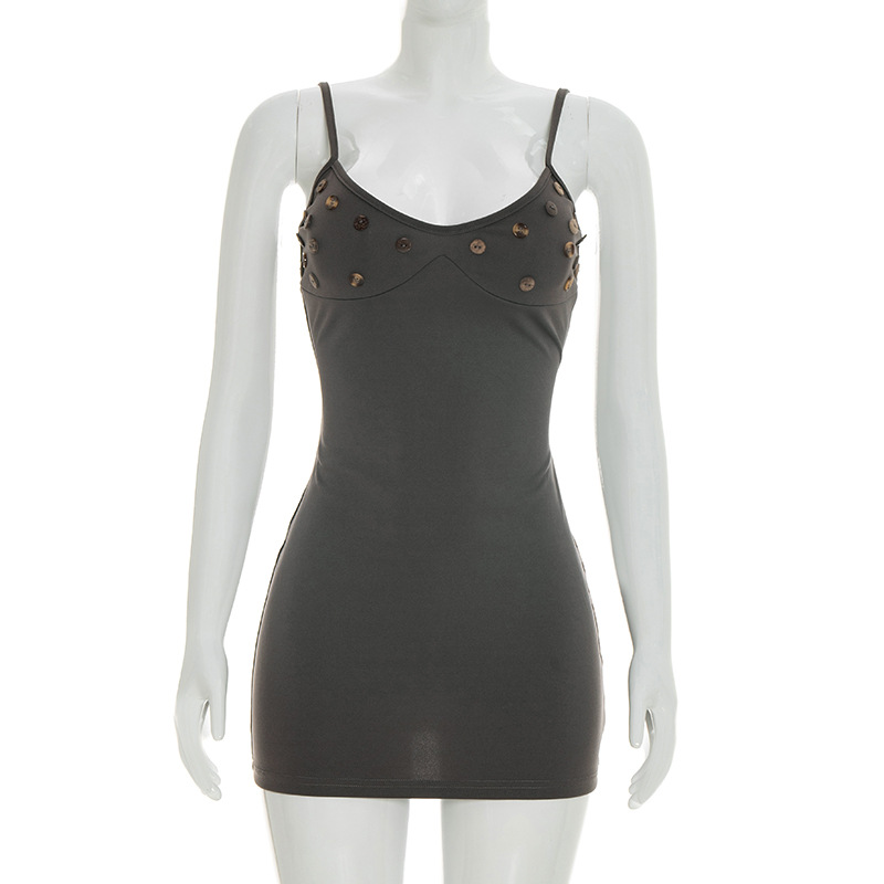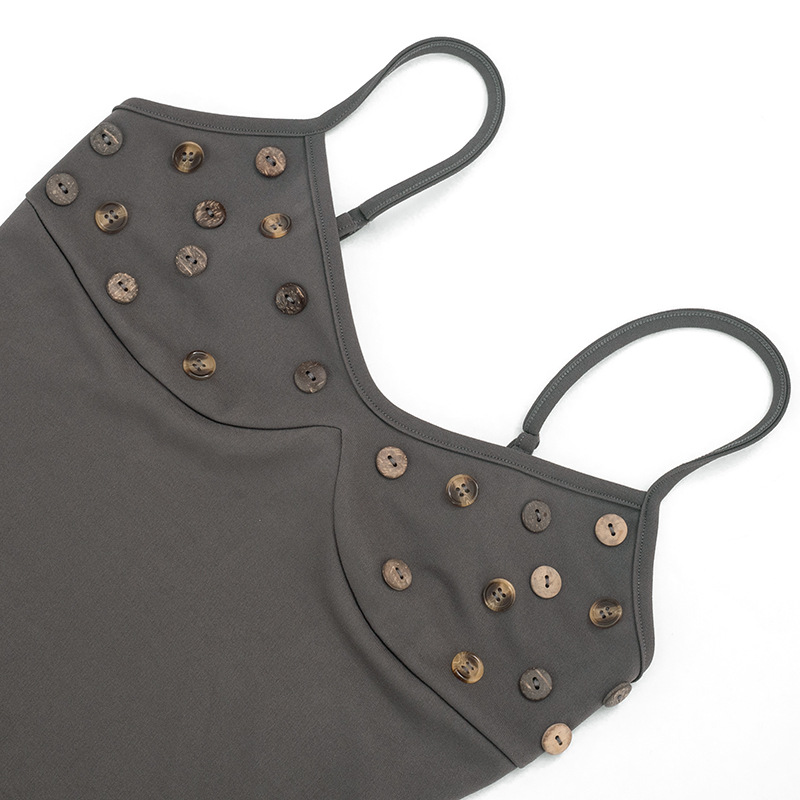 Vintage style niche design button splice gray slim mini bodycon slip dress