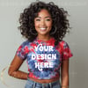 Red, White, Blue Patriotic Tie Dye T-shirt Blasian Woman Mockup Digital Download with Gray Background, Design Mocks, American Tie Dye T-shirts