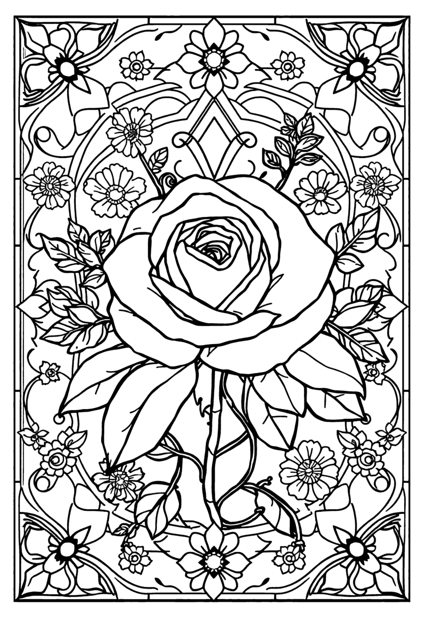 Stained Glass Flowers Trees & Cottage Gardens Colouring Book