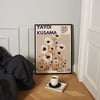 Inspired by the iconic dot language and floral rhythm associated with Yayoi Kusama, this piece evokes the atmosphere of a museum exhibition poster while remaining versatile enough for everyday interiors. It’s ideal for styling a gallery wall, creative studio, living room, bedroom, or modern hallway.