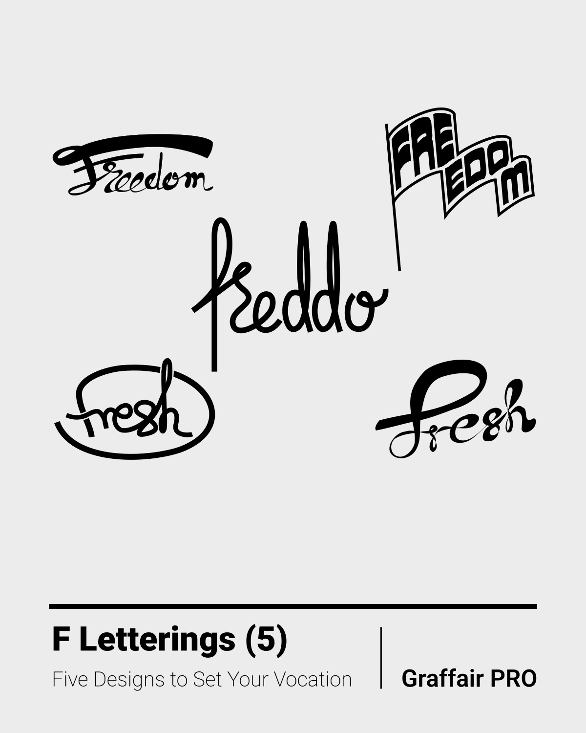 F Letterings (5): The 5th set of "F" logo/letterings includes five original designs. These letterings are part of the "800 SVG Letterings" bundle, which also contains 800 other exceptional designs.