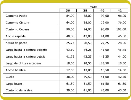 Verifica las medidas de cada talla en el cuadro adjunto.