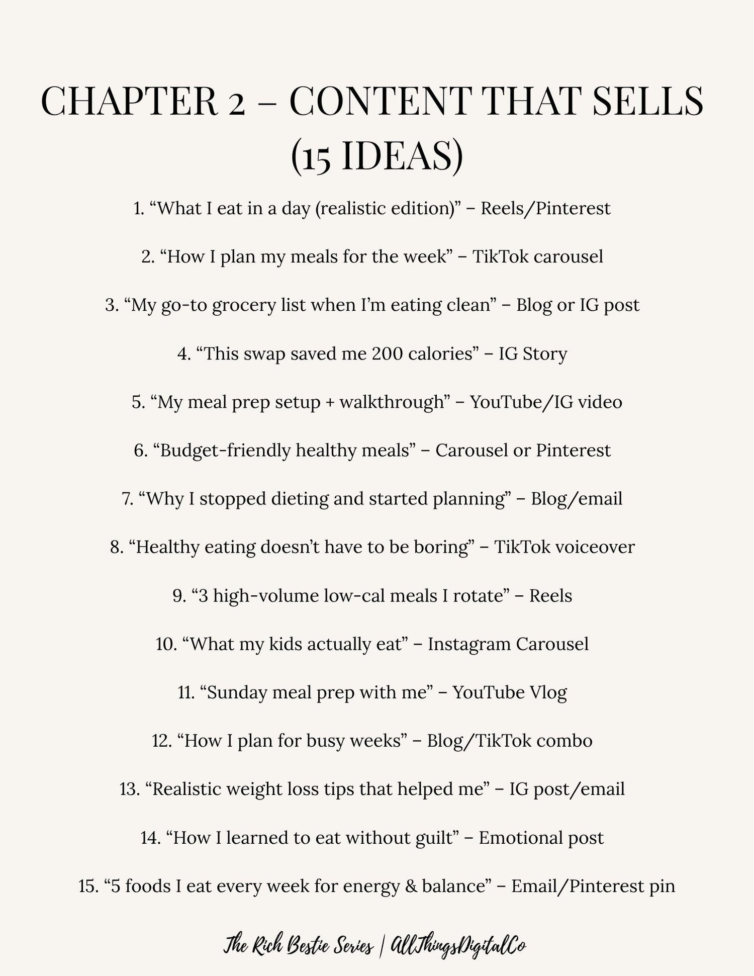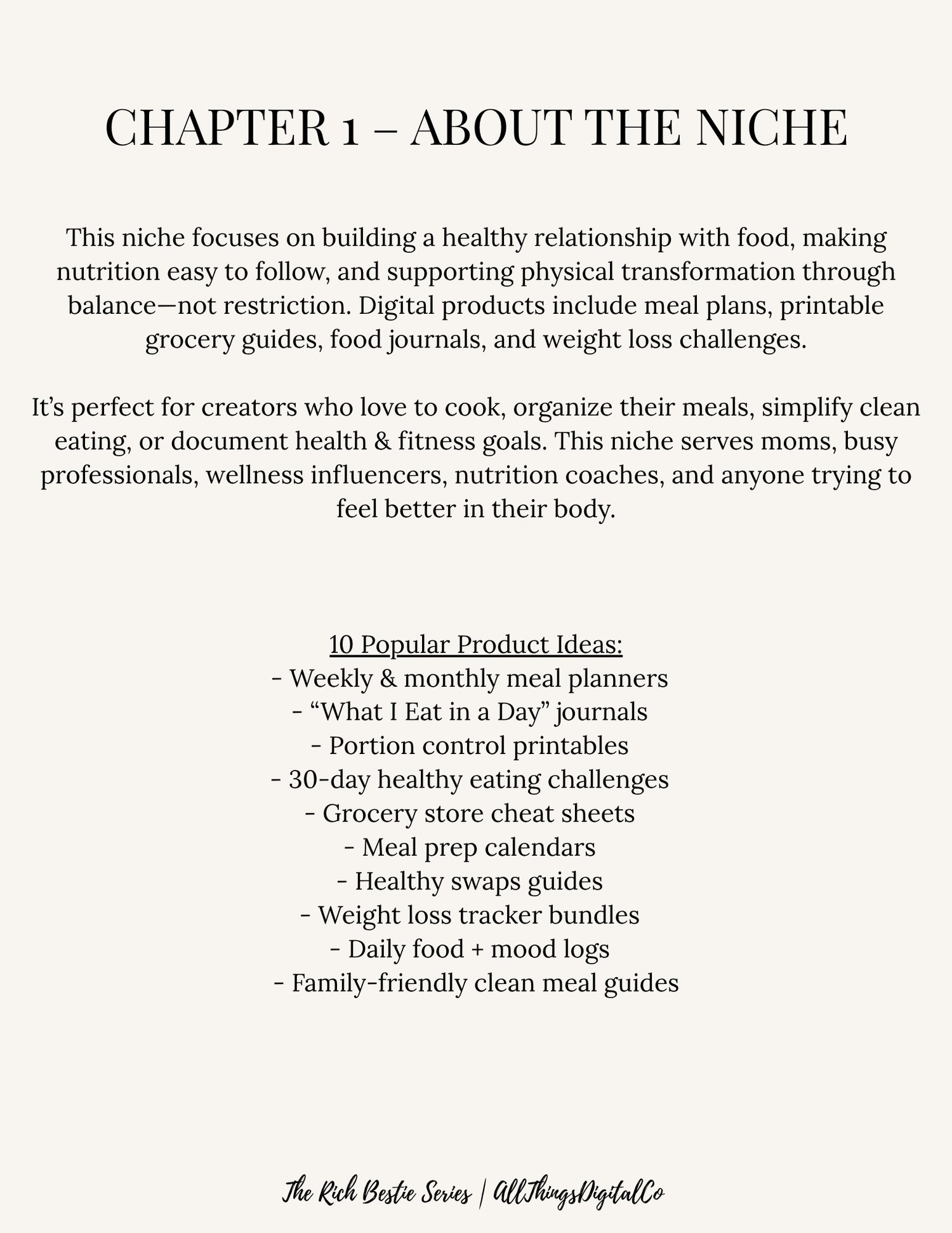 This is a feel-good, practical niche that people are always searching for. Whether you’re passionate about meal prep, clean eating, or realistic weight loss — this ebook helps you build a business around it. Includes content ideas, platform tips, and monetization strategies that don’t require showing your face.