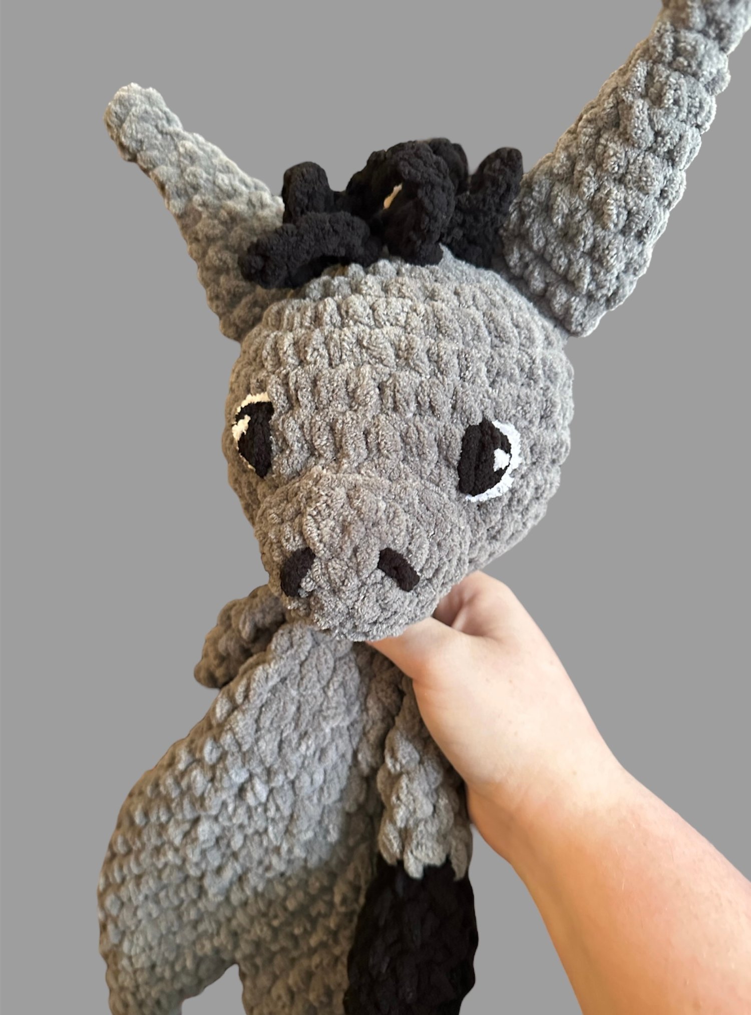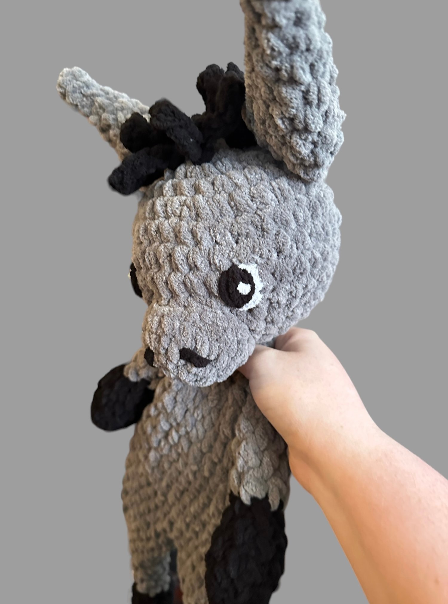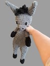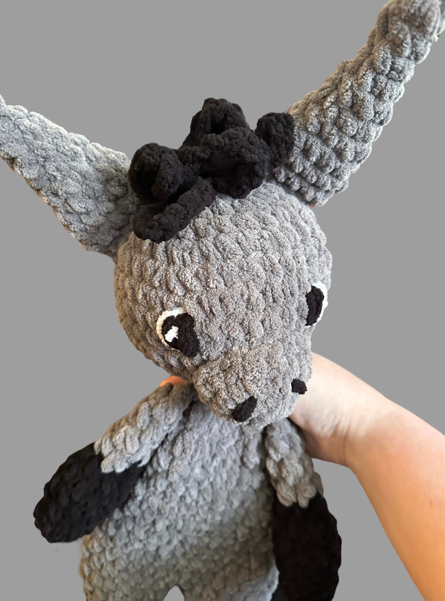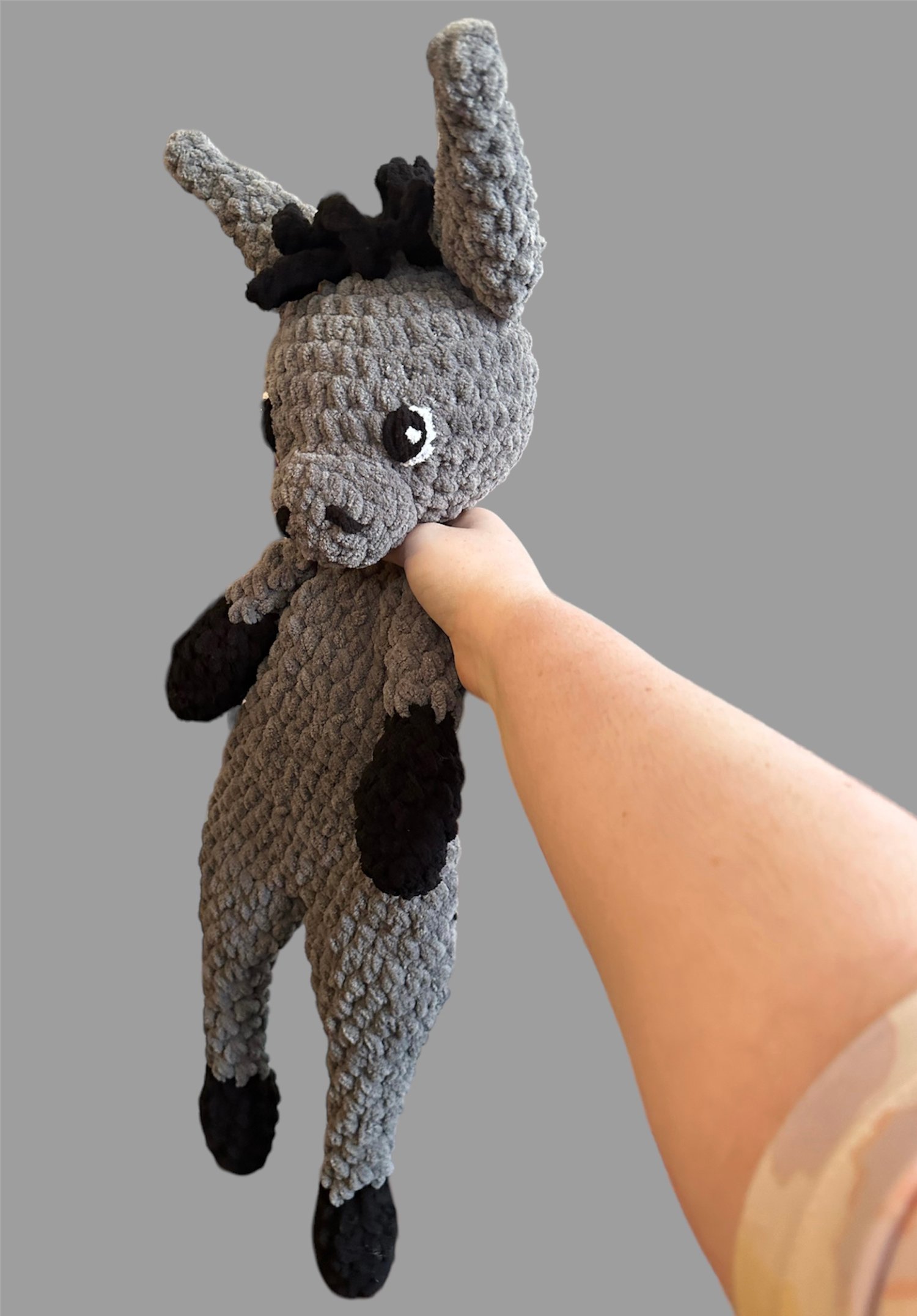 Loveys are security blankets meant for tiny hands to hold. Instead of a blanket with a head attached they have a body, but the bush is left unstuffed for those tiny hands to be able to hold. All loveys are made with embroidered baby safe eyes so there are no choking hazards! Approximately 14” long