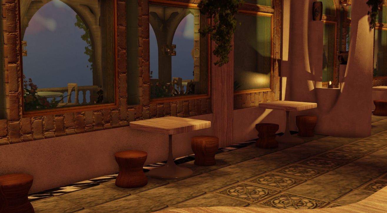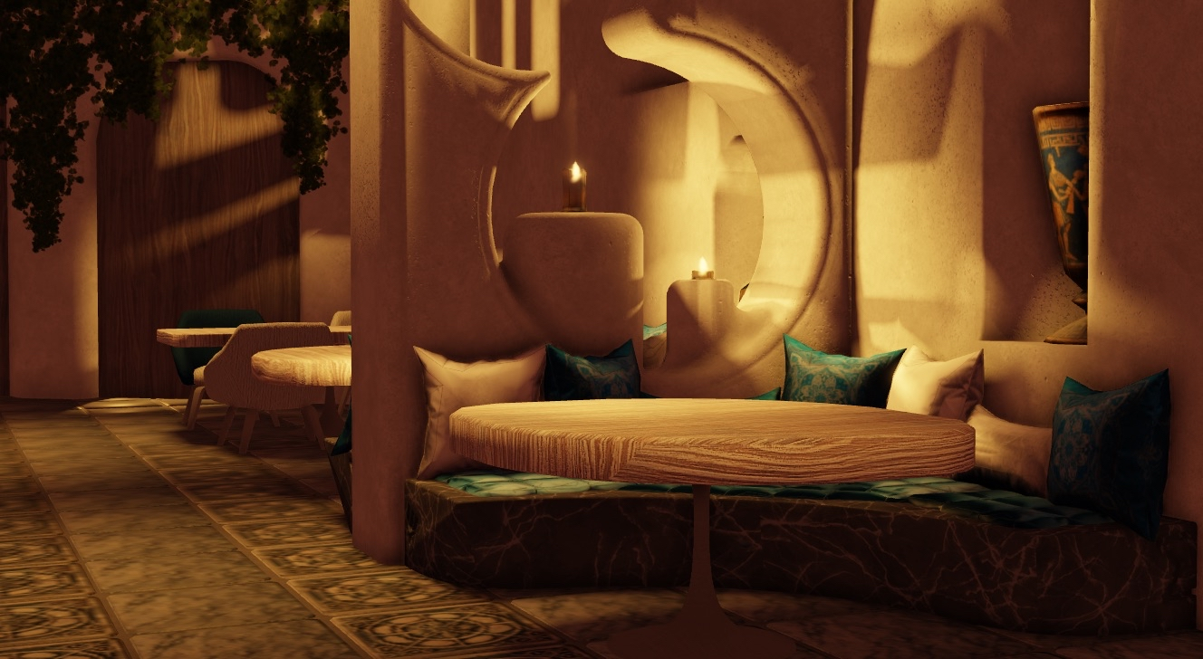 - Warm atmospheric lighting simulating a soft golden-hour ambiance