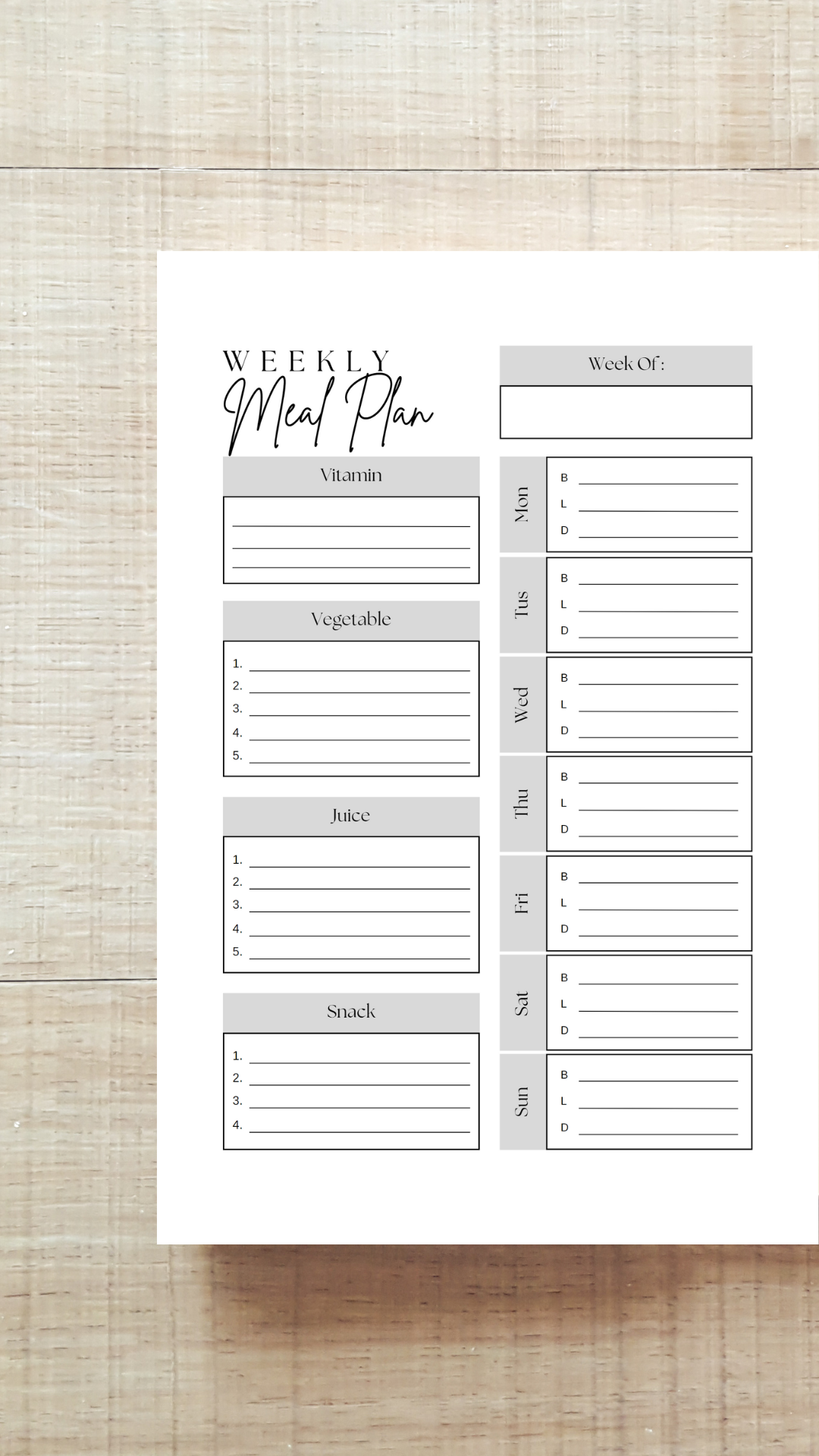 Weekly Planner Interior (3 Sizes)