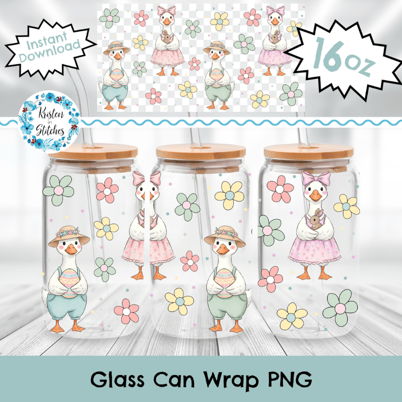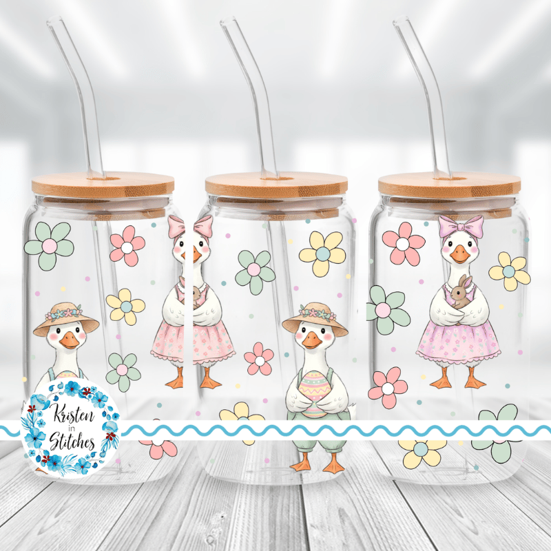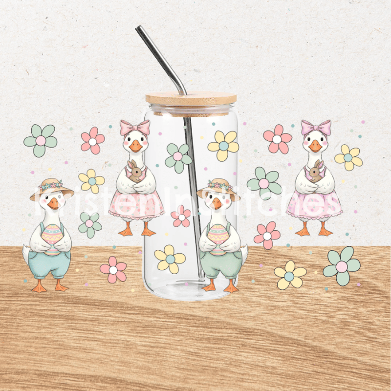 Spring Goose 16 oz Glass Can Wrap Transparent PNG, Easter Geese, Ducks, Bunny and Eggs