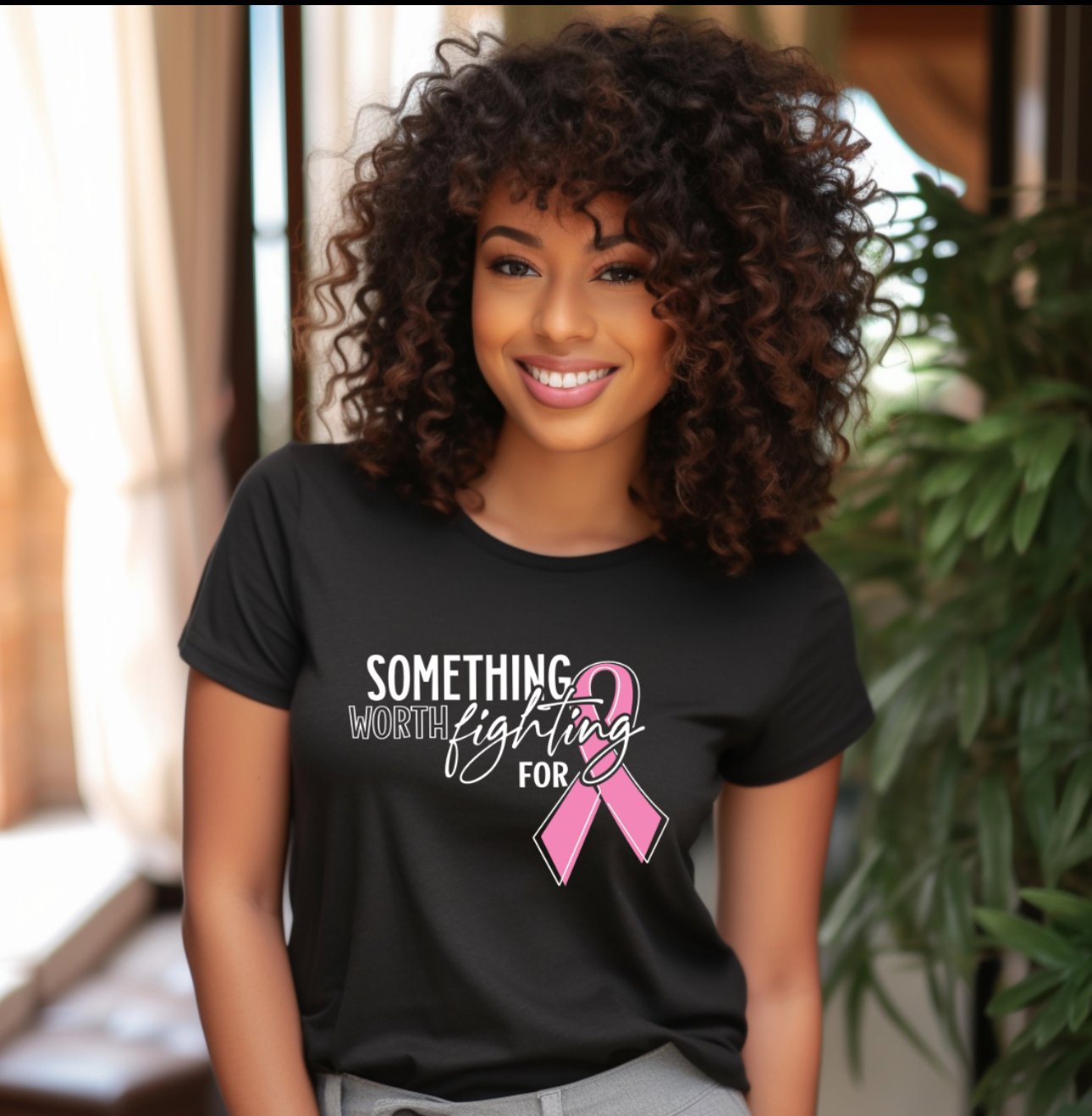 “Something Worth Fighting For” Breast Cancer Awareness DTF Transfer.