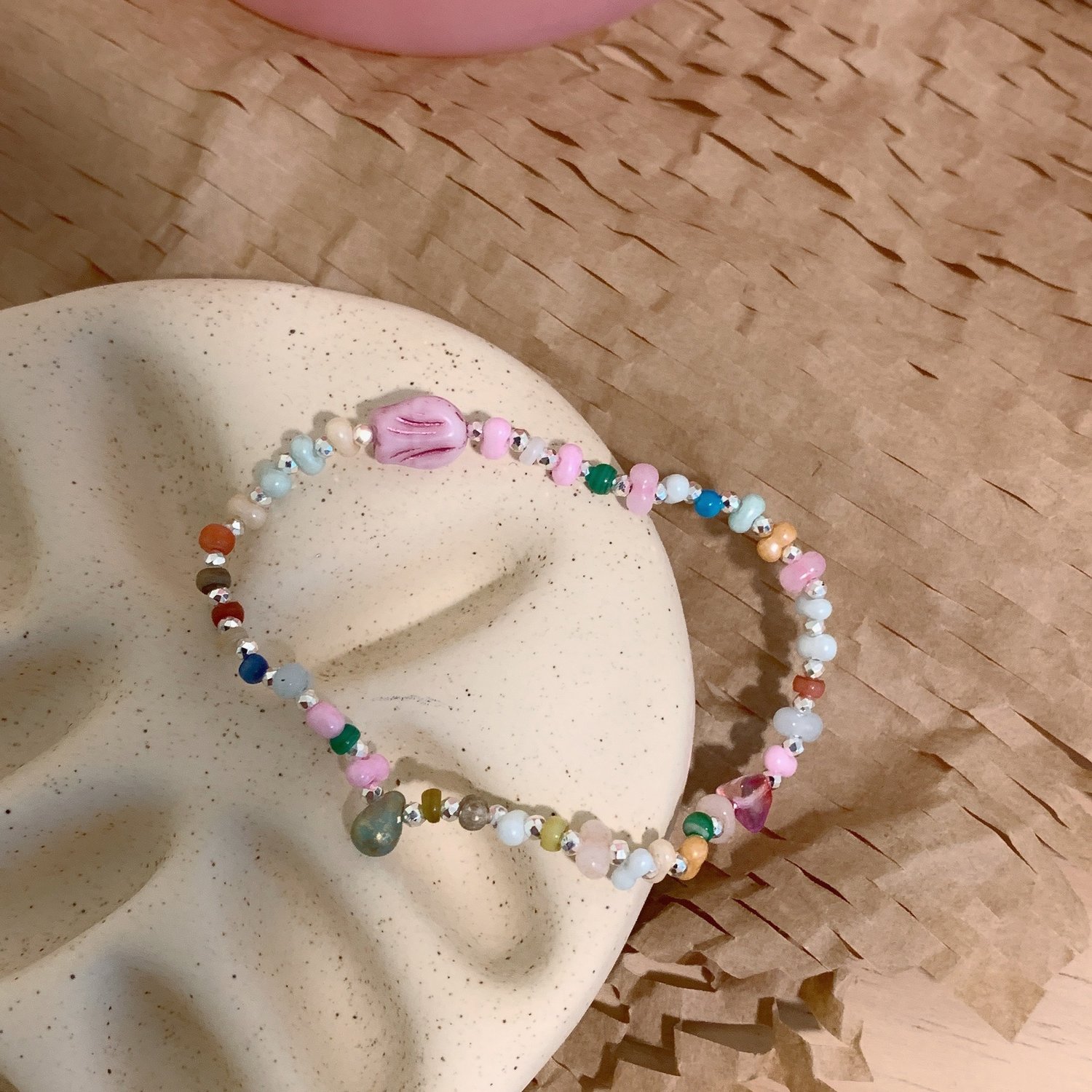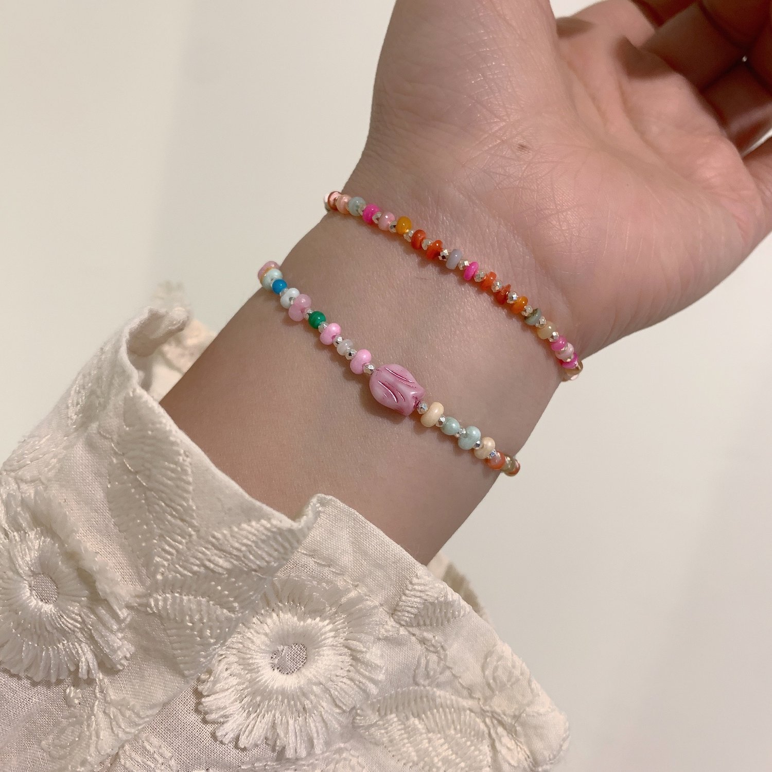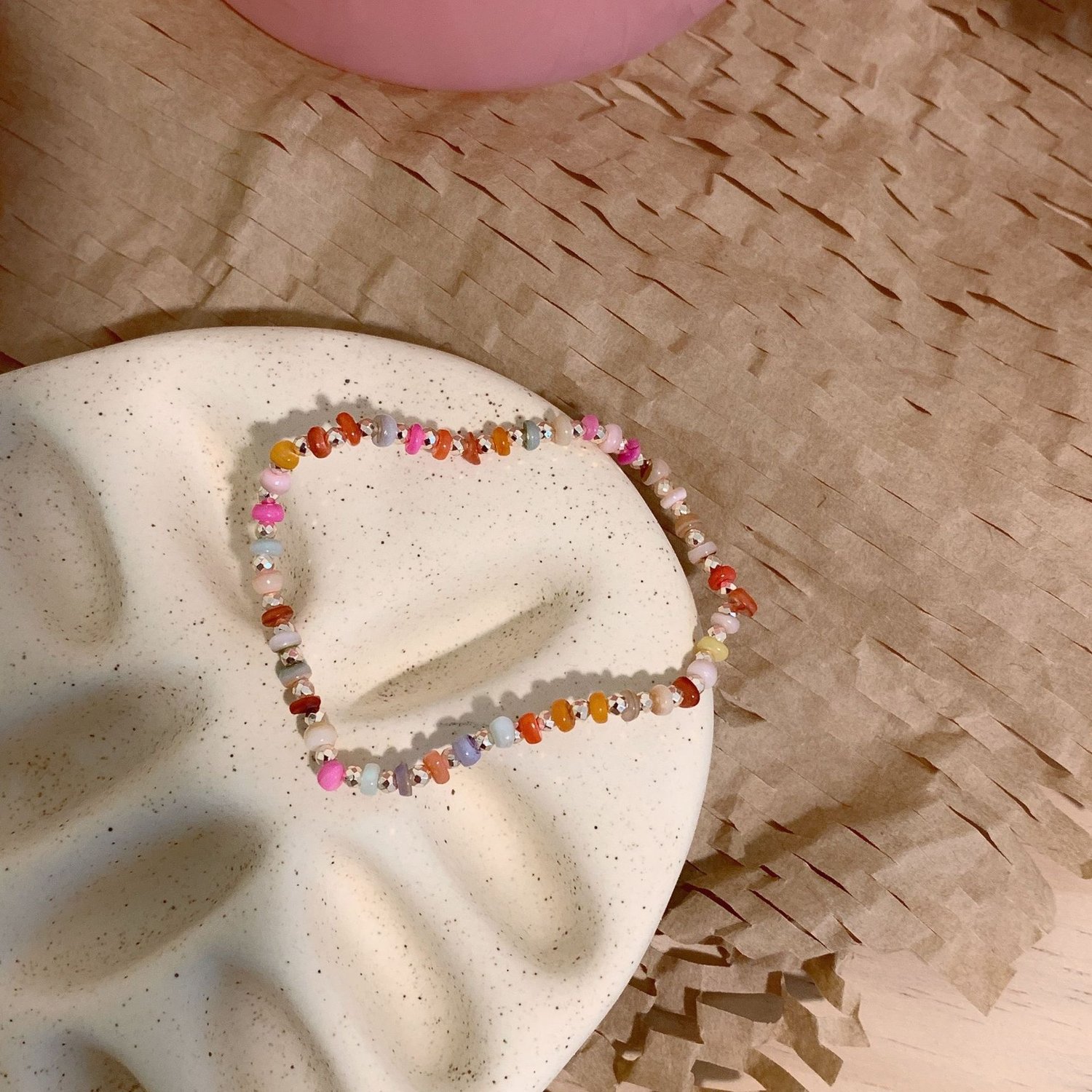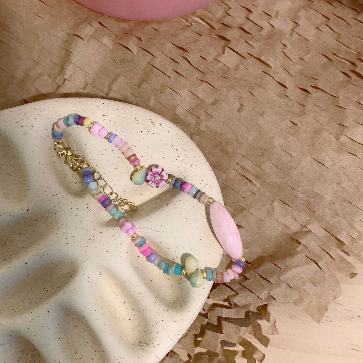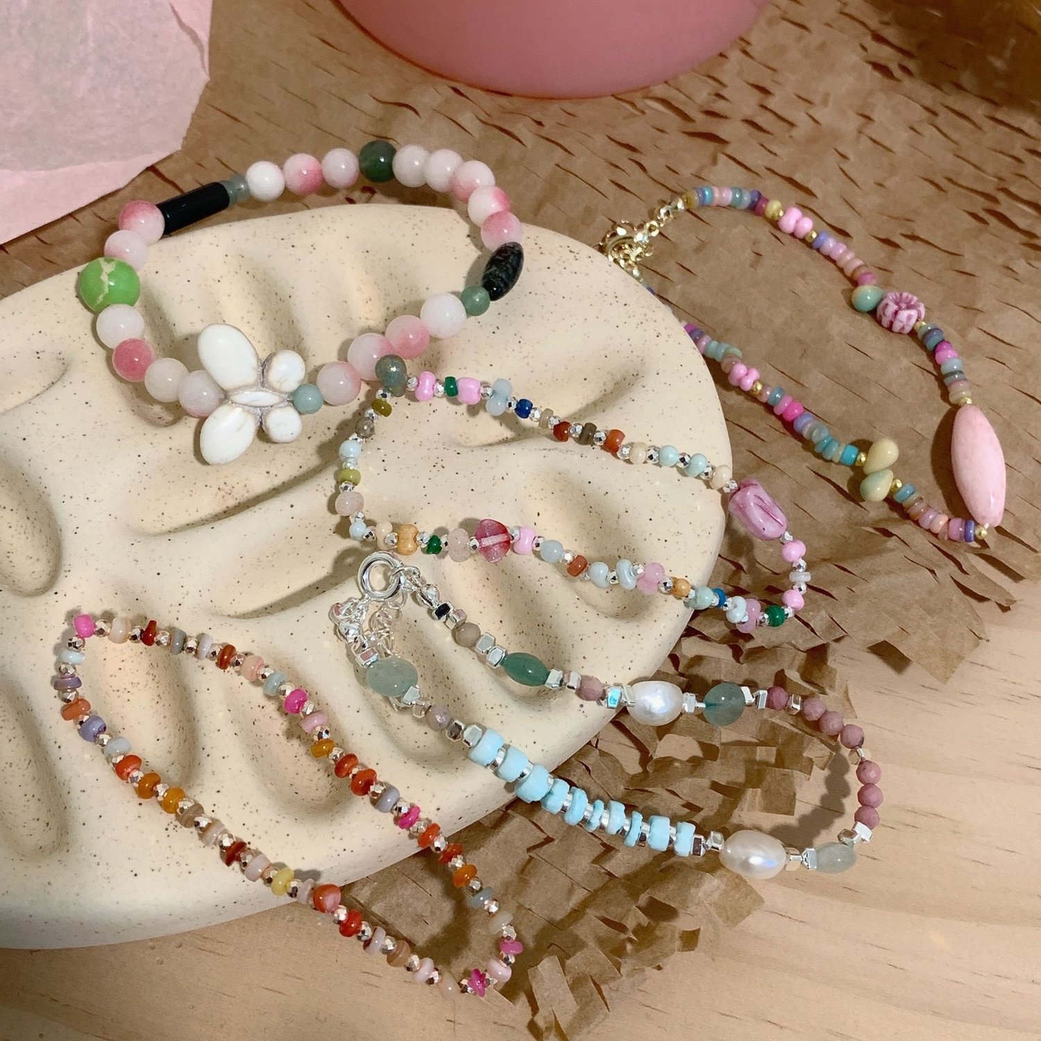 Handmade natural stone beaded retro ethnic boho gradient butterfly bracelet