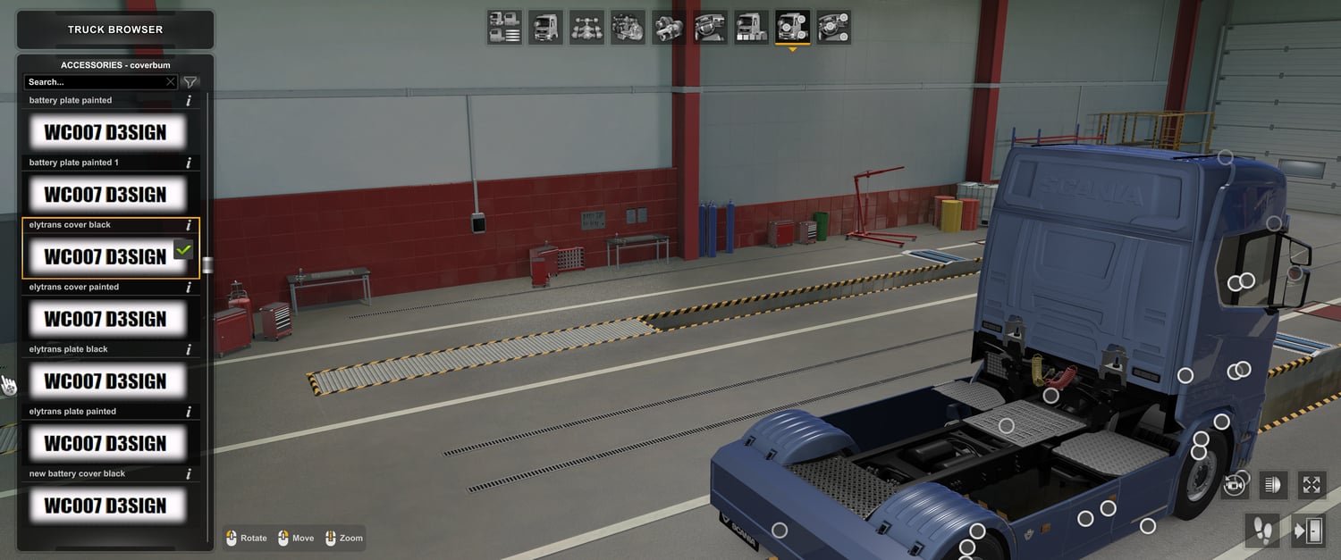 Scania middle elytrans chassis cover mod works only with Scania no spoiler mod V1 or Scania no spoiler mod V2 and not work with and Base game Scania truck