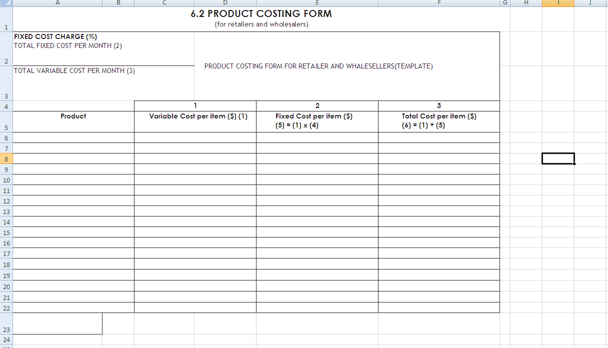Product Costing Template for Retailers & Wholesalers (Editable Form)