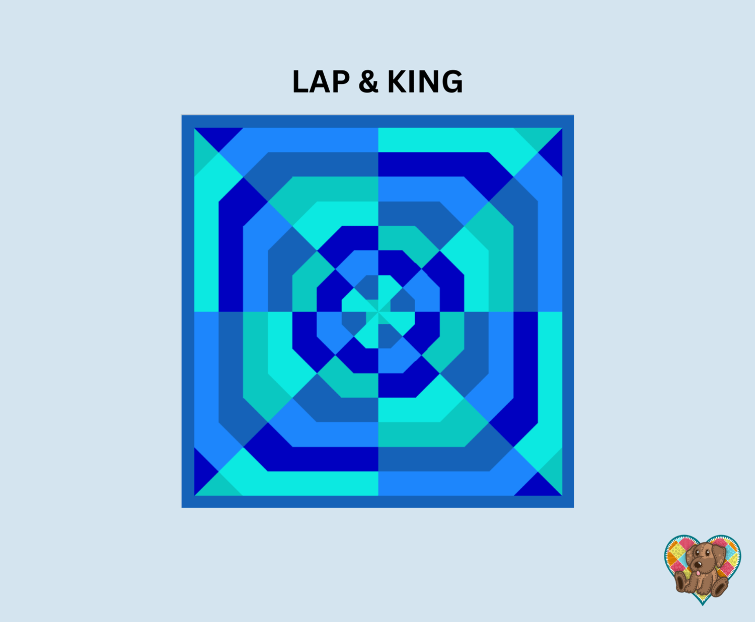 *Note: This pattern includes instructions for a baby (42.5" X 42.5"), lap (64.5" X 64.5"), twin (75.75" X 90"), queen (90" X 106.5"), and king (110" X 110") size quilt. Blocks are traditional pieced blocks.