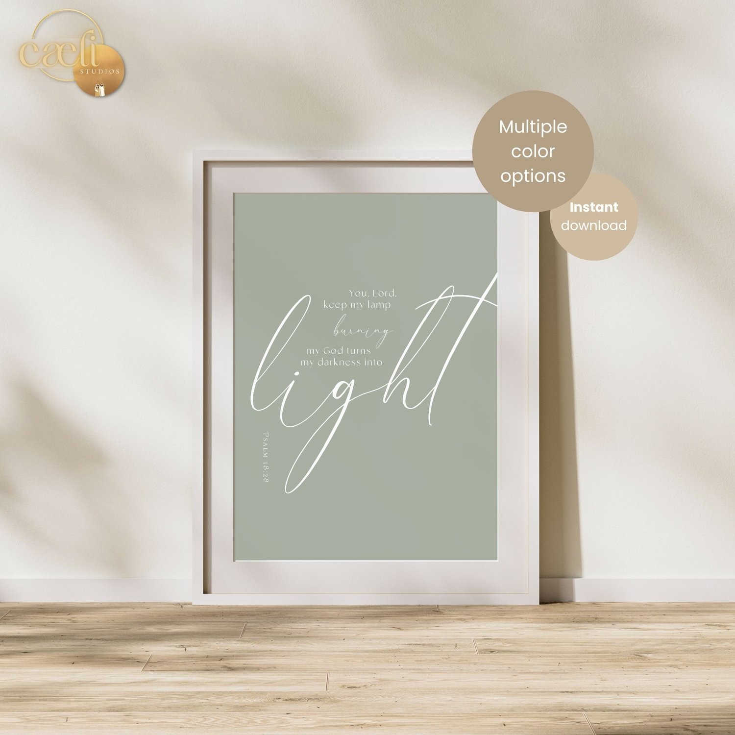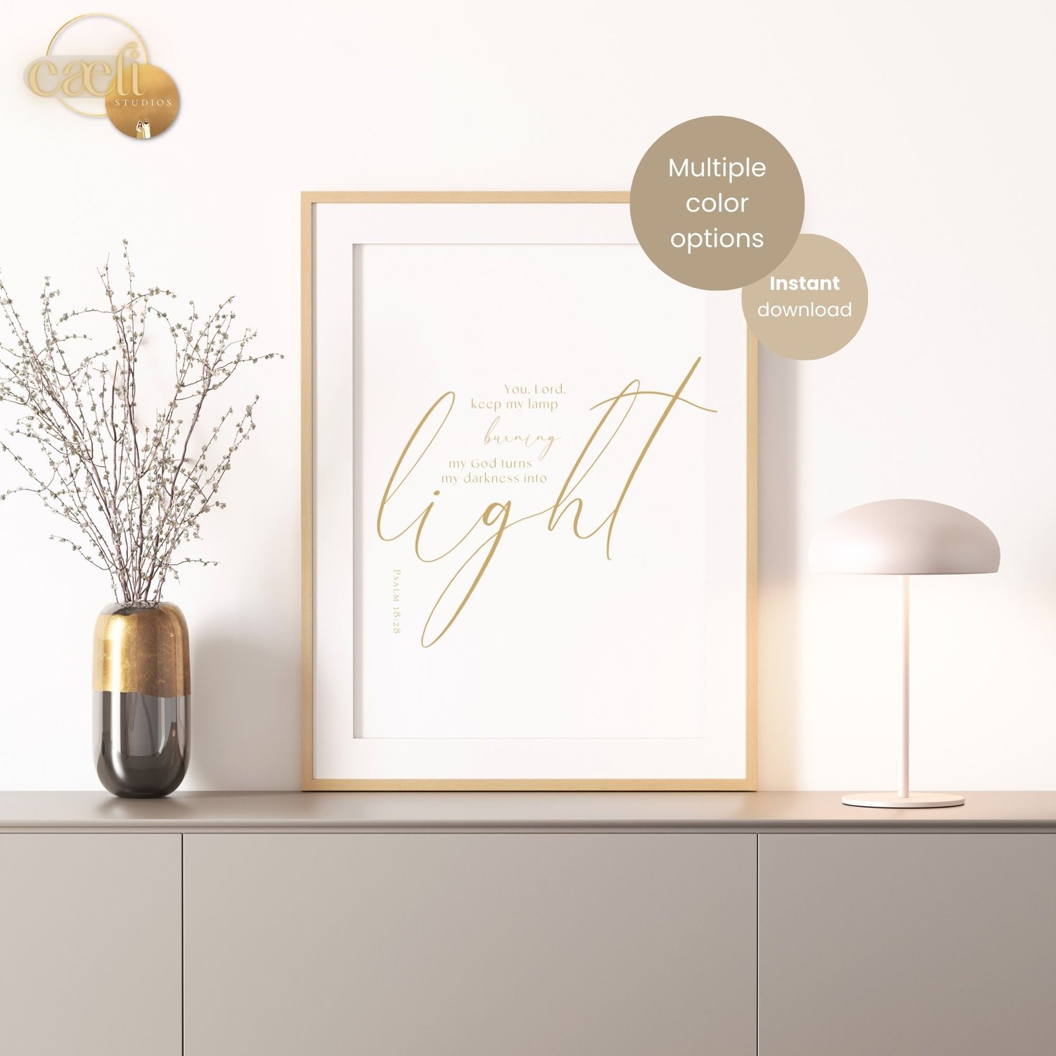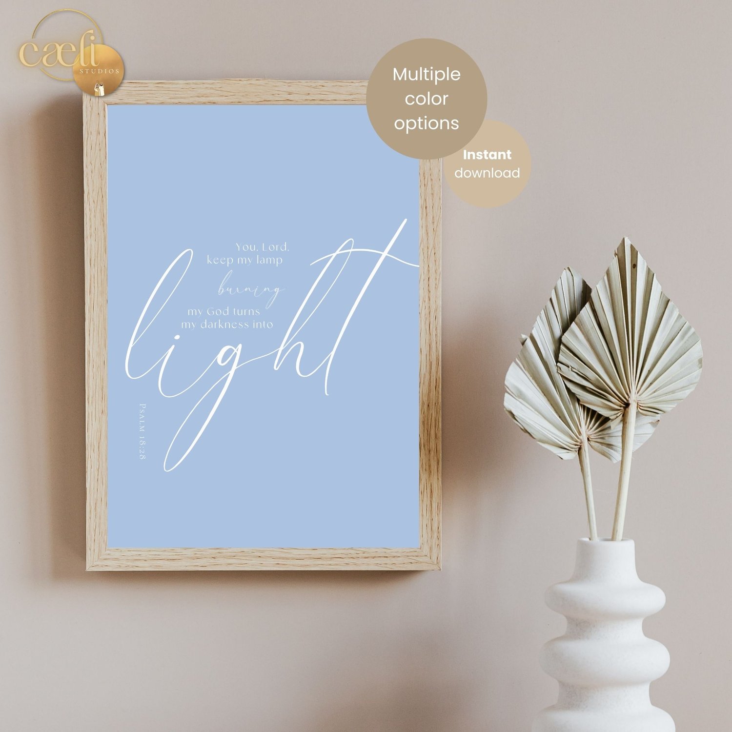 Darkness into Light | Psalms 18:28 Quote | Printable Wall Art