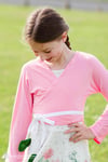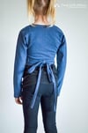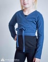 The ties can be wrapped around to the back or front, allowing for unique styling options. This vest pairs beautifully with skinny jeans and boots or can be taken to dance class as a cute ballet wrap, complete with leg warmers and a ballet skirt. For adults, it adds a sweet touch over an empire top or dress, and its cropped design makes it a fantastic choice for maternity wear.