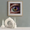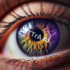 A stunning macro exploration of the beauty of the human eye with a splash of purple, where technology and color converge to create a visually stunning and emotionally resonant piece of contemporary art.