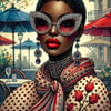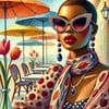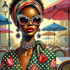 Introducing the "Bold & Beautiful: Afrocentric Sticker Collection," a captivating set of 6 unique PNG sticker images. Each sticker showcases the essence of Afrocentric style, featuring a striking image of a black woman with vibrant accessories, including dazzling sunglasses, intricate earrings, and eye-catching patterns. The artistic backdrop of tulips adds an extra layer of elegance and charm to the designs.