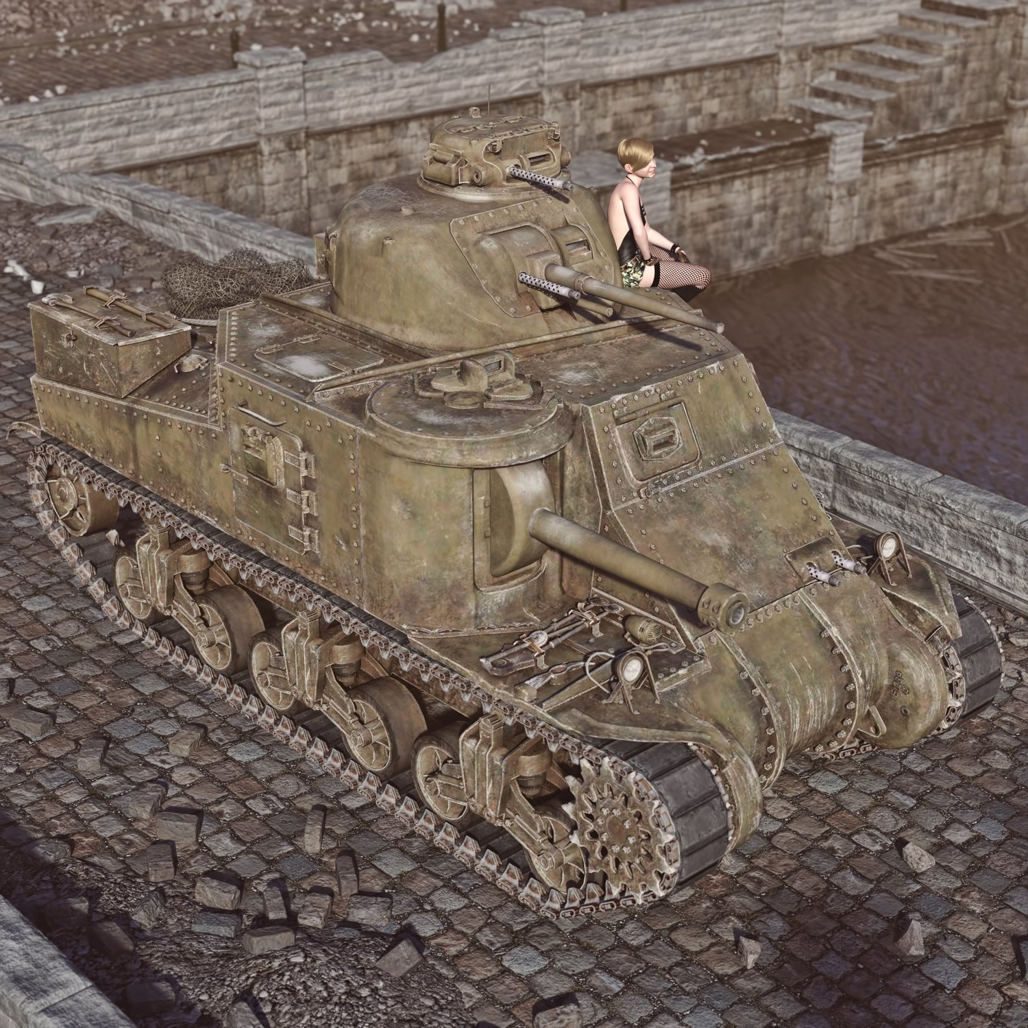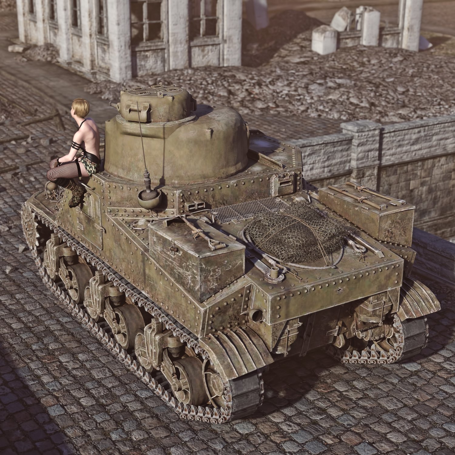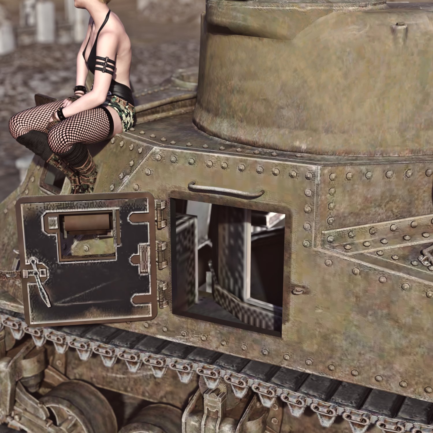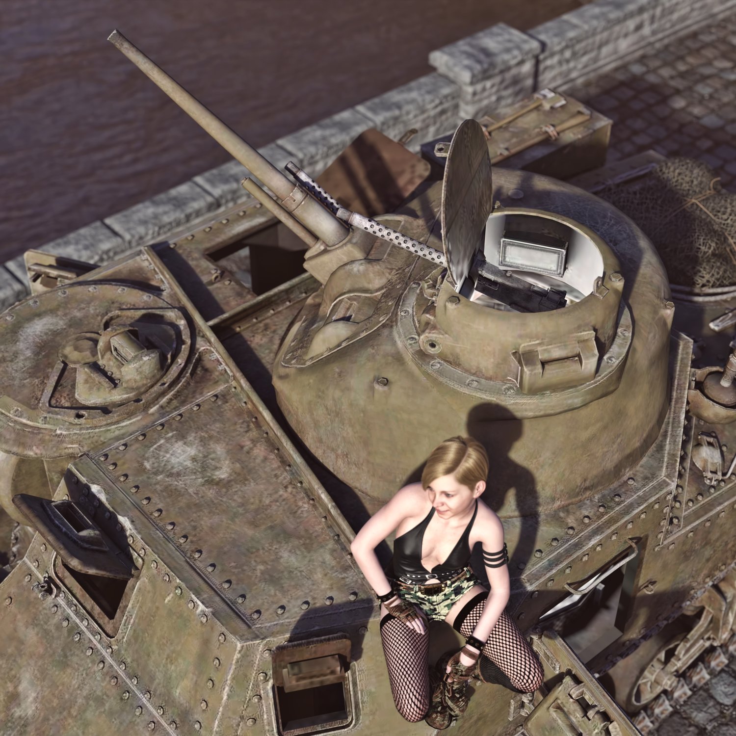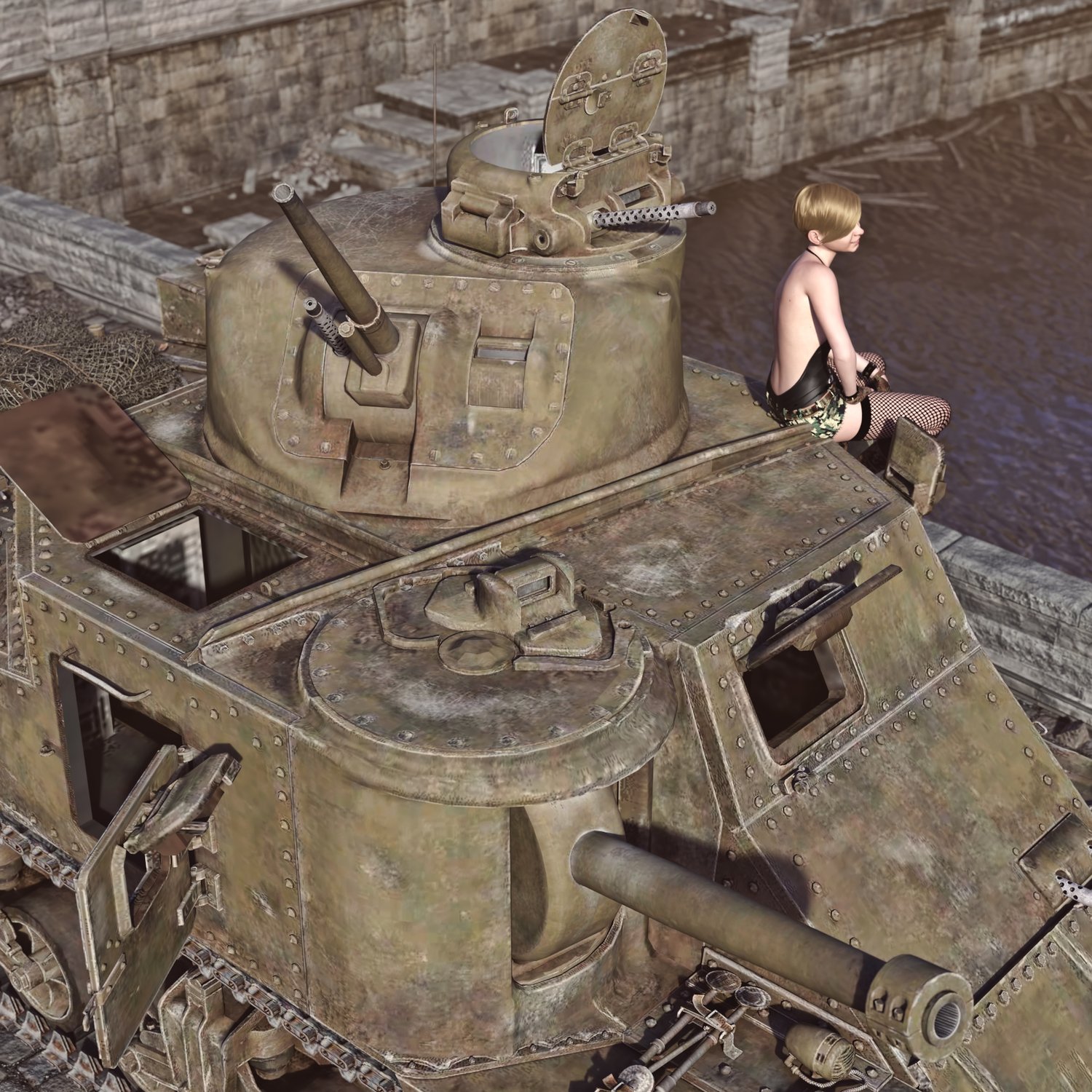 A cool British light tank of WW2 era. Not the best tank of it's time, but a good compromise, this tank made a big impact on North African campaign. And looks stunningly weird :D Do you need some turrets? Because this tank has turrets. And also turrets on turrets. Hatches are rigged for better dismount and more realistic pics. The turrets also rotates and the guns pivots. Good or combat with lightly to moderate armored enemies. The turret form and the second small turret make it very cool looking. And also the large side turret. Because turrets. The prop is converted and rigged for DAZ.