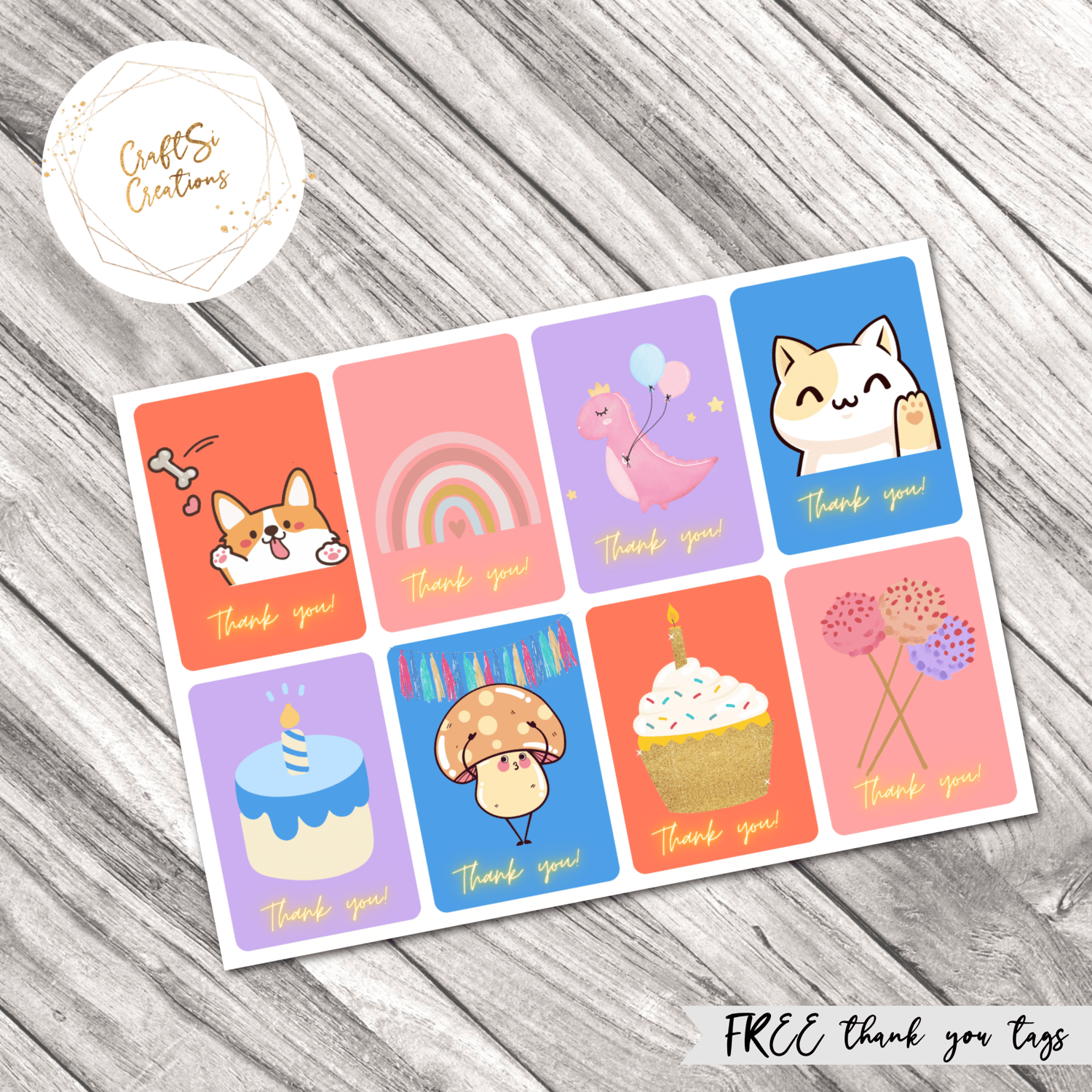 FREE - 8 cute thank you birthday favor tags - perfect for attaching to a loot bag or small gift