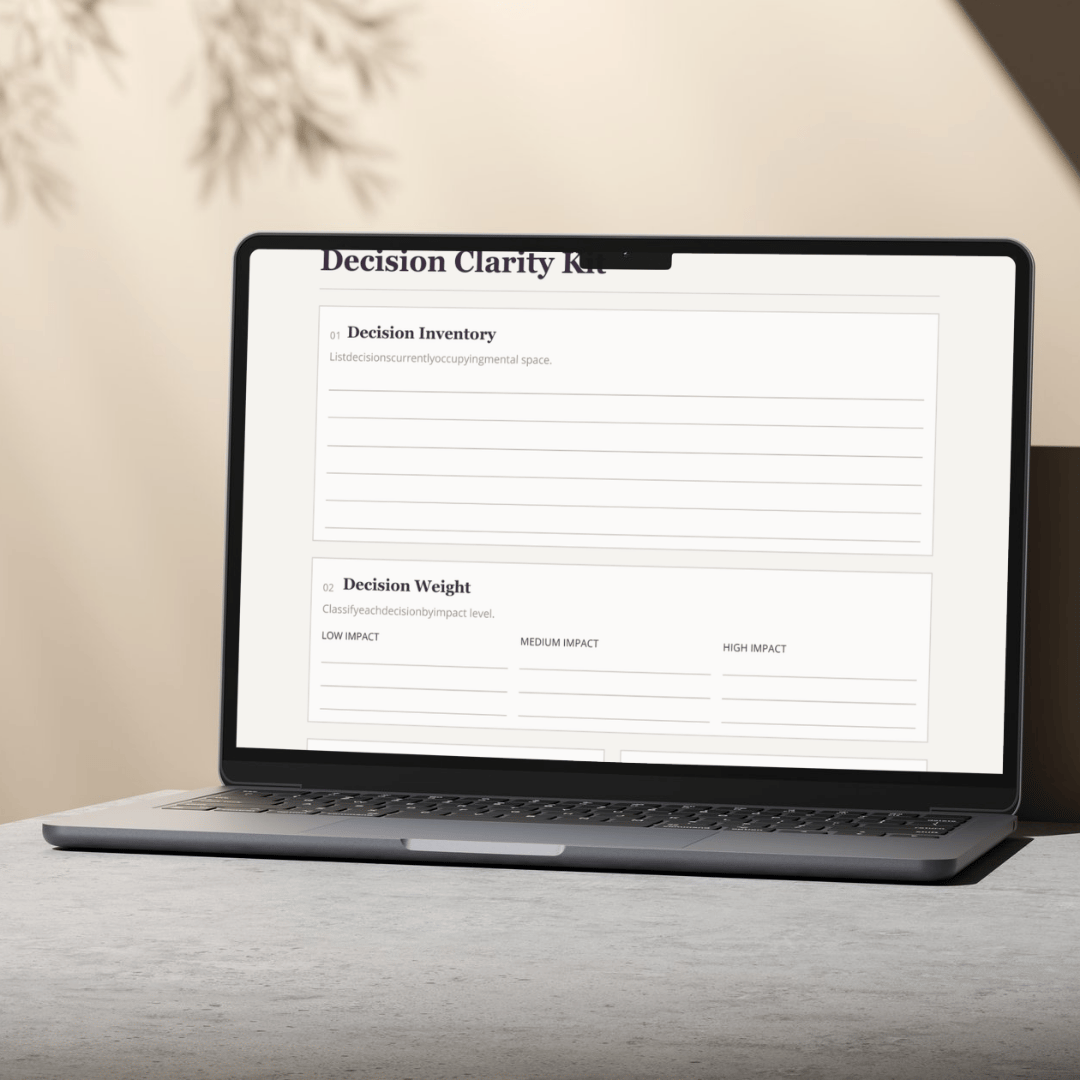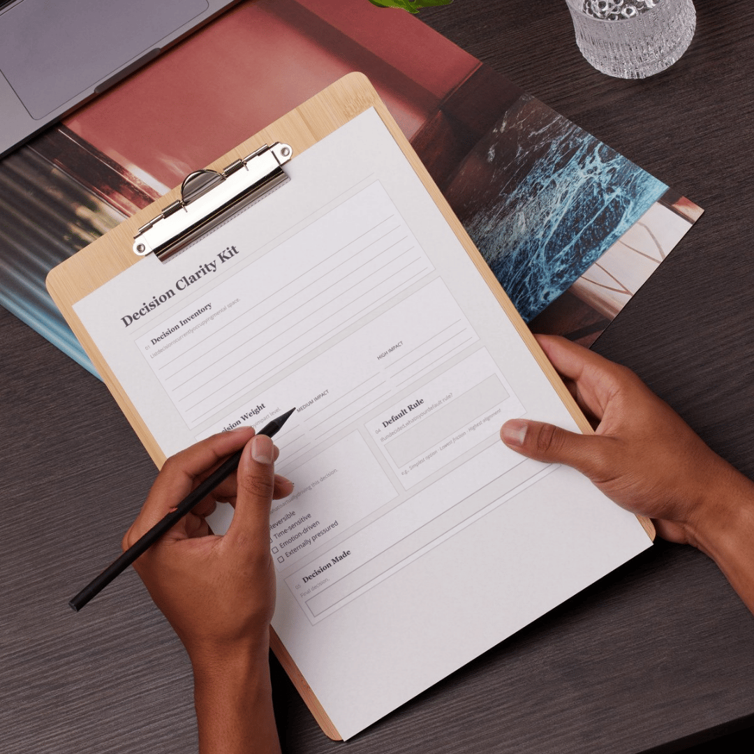 The Decision Clarity Kit is a structured worksheet designed to help you evaluate, filter, and finalize decisions quickly and rationally.