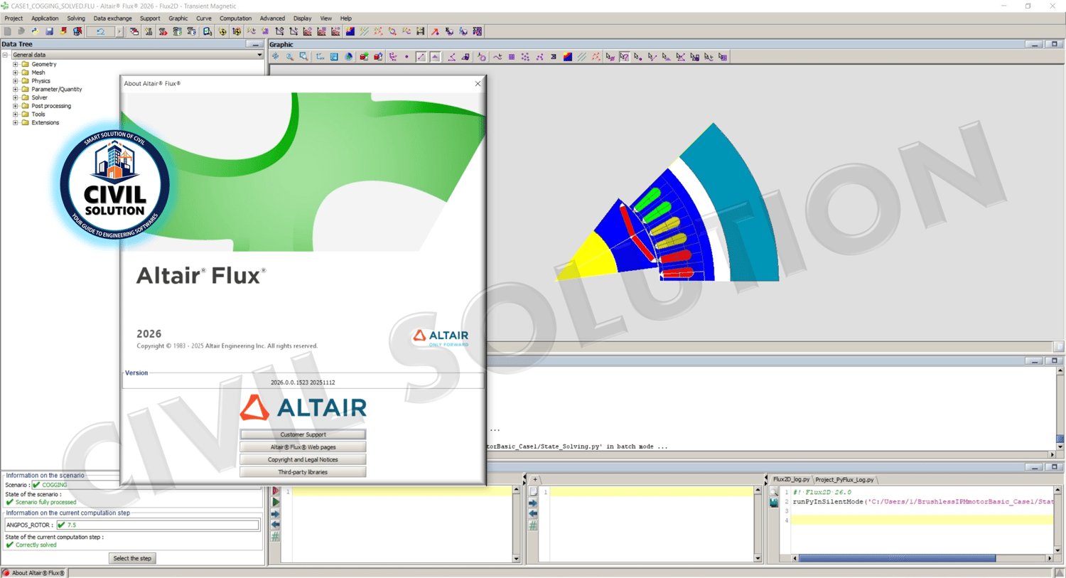 🔀 Altair Flux & FluxMotor 2026.0 is a simulation suite used to design and validate electric machines and electromagnetic devices, with Flux providing detailed electromagnetic/thermal-style analysis workflows and FluxMotor focusing on fast, guided e‑motor design and performance exploration. It’s commonly used for motor development (traction, e‑mobility, industrial drives) where engineers need to predict torque, efficiency maps, losses, and operating behavior before prototyping.
