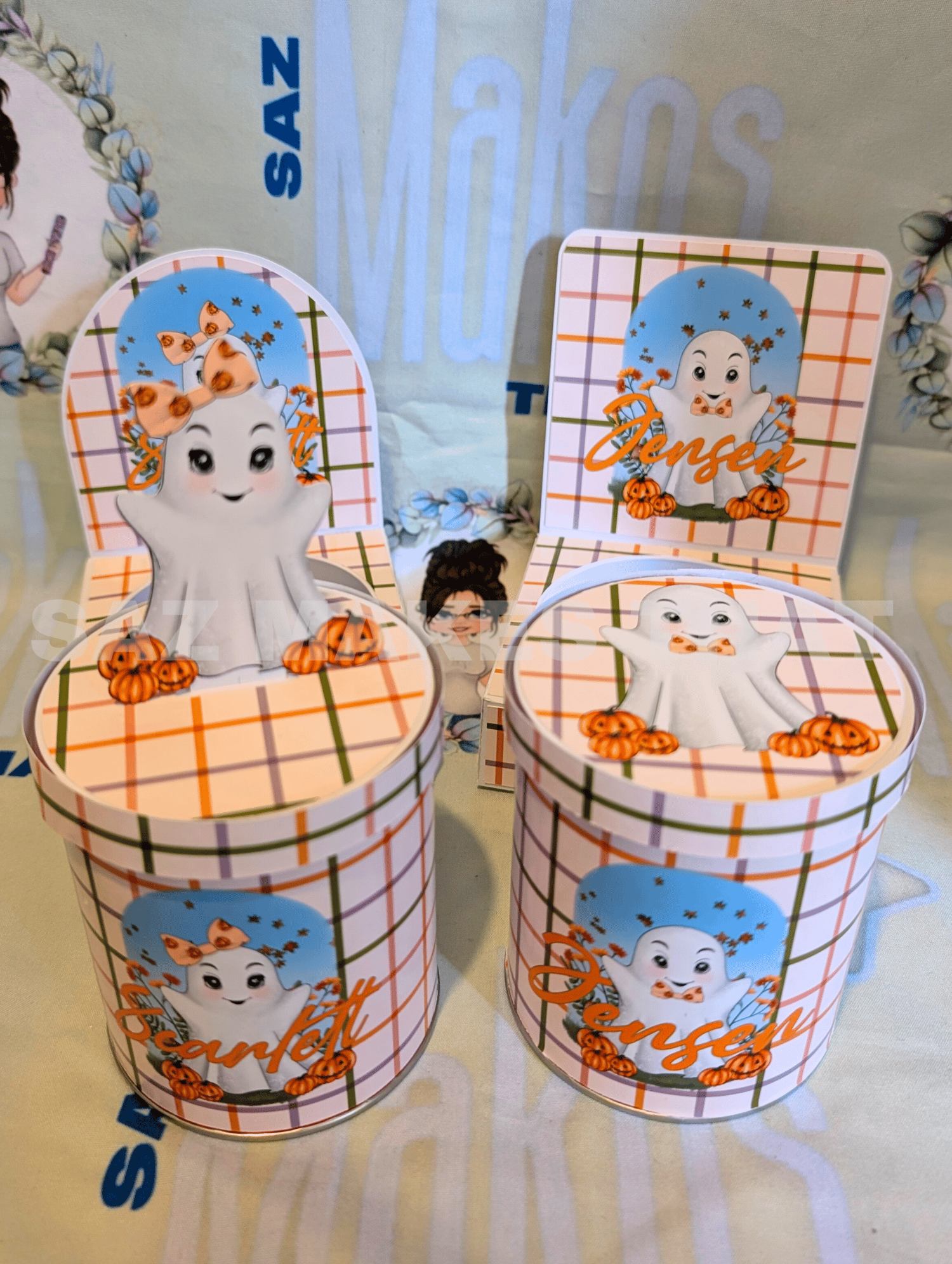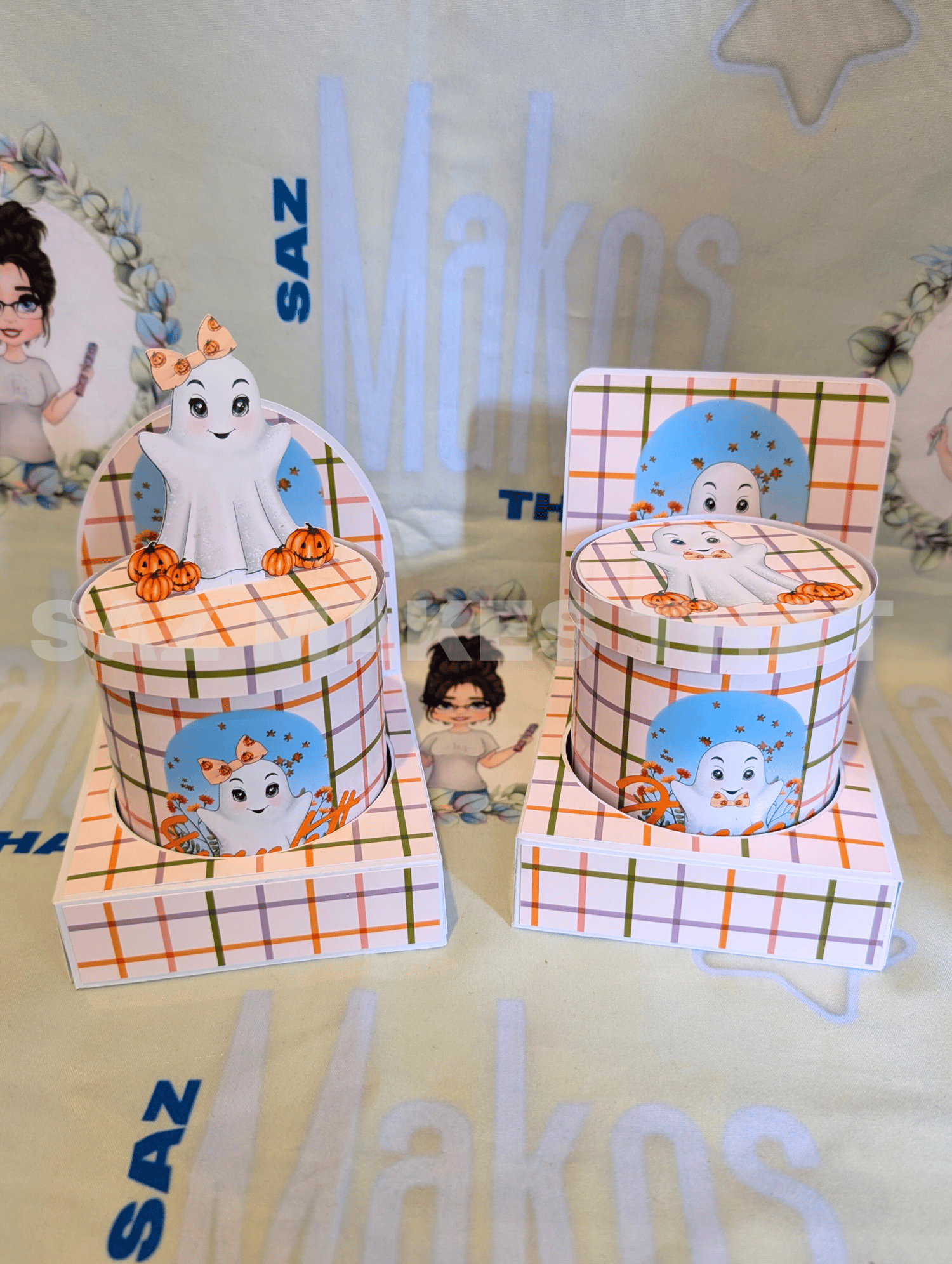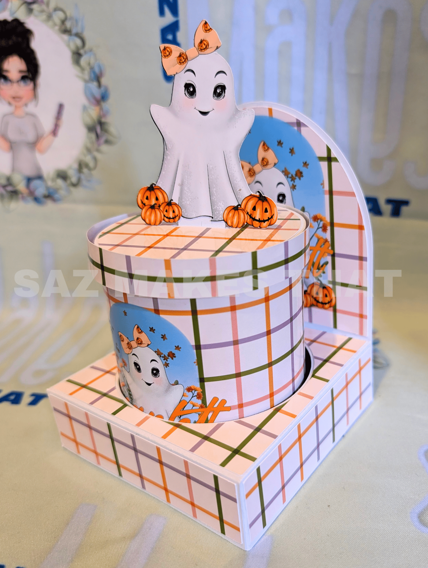the file includes the holder with 2 different back options and templates for the tub wrap and lid that you can personalise with images and text for print then cut or just cut from plain or patterned card.