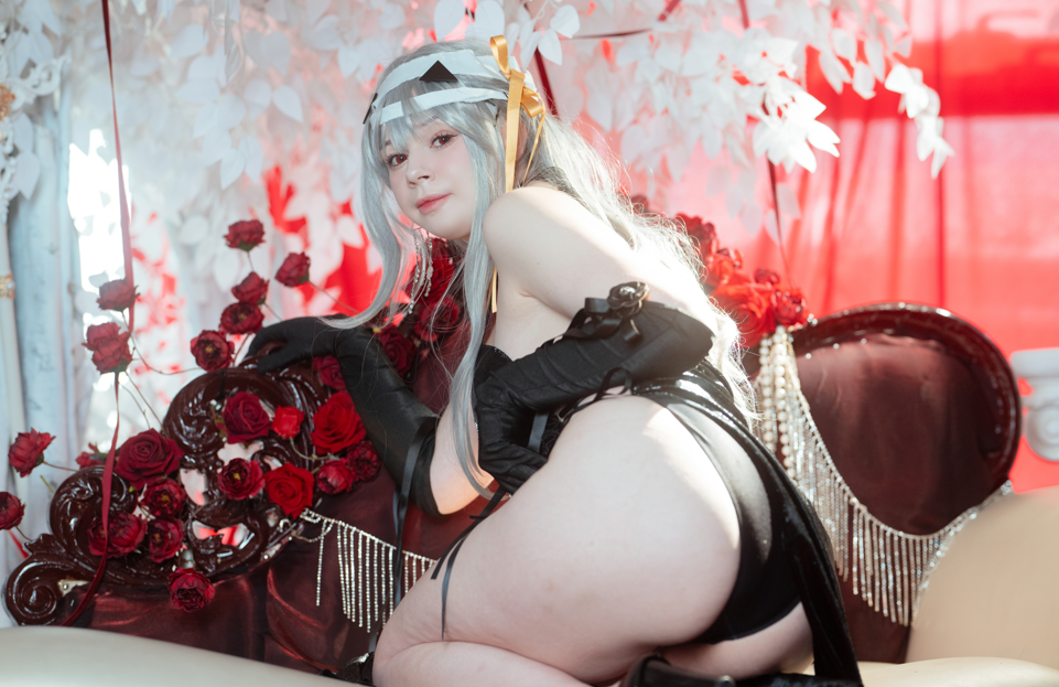 This set contains 49 photos of Modernia in her formal dress