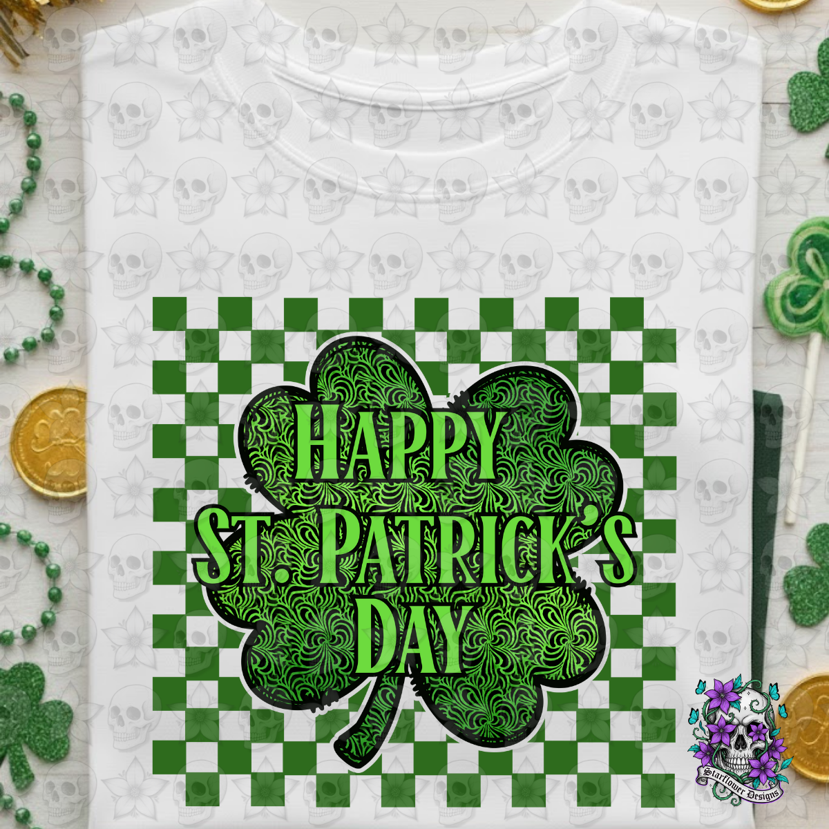 Happy St. Patrick's Day Checker Shamrock; PNG DIGITAL FILE ONLY