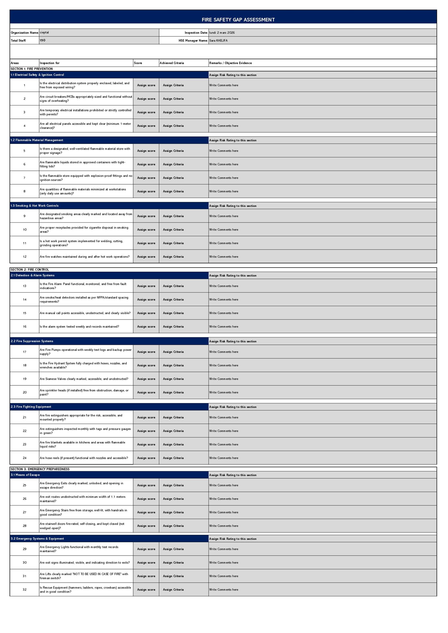 Ideal for HSE officers, safety managers, auditors, and compliance professionals who want a reliable method to assess fire safety readiness.