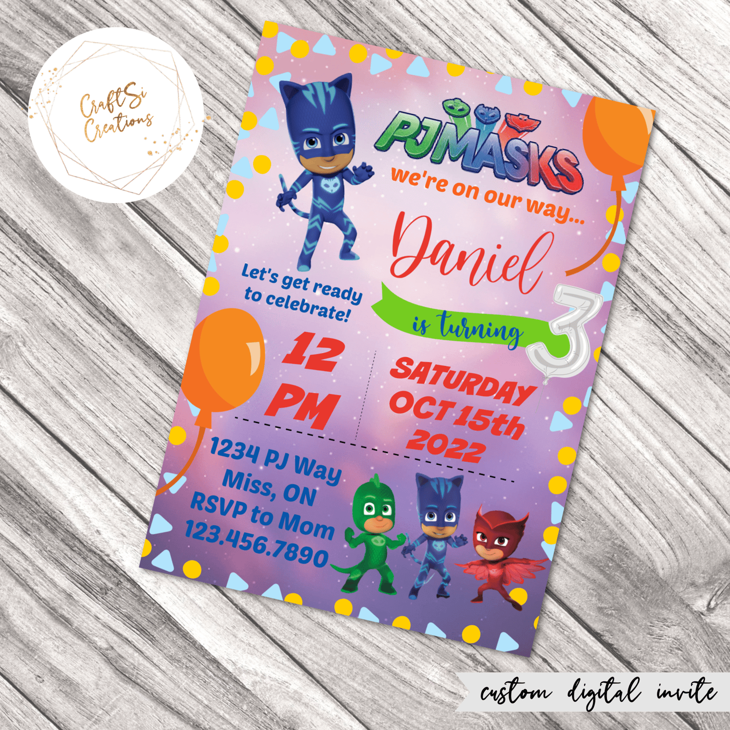 PJ Masks Digital Invitation, PJ Masks Birthday Invitation, PJ Masks Printable Invitation, PJ Masks Birthday Party Theme