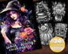 34 Dark Witchy Coloring Book, Adults + kids- Download - Grayscale Coloring Page - Gift, Printable PDF, witches, cats , candles, spiritual