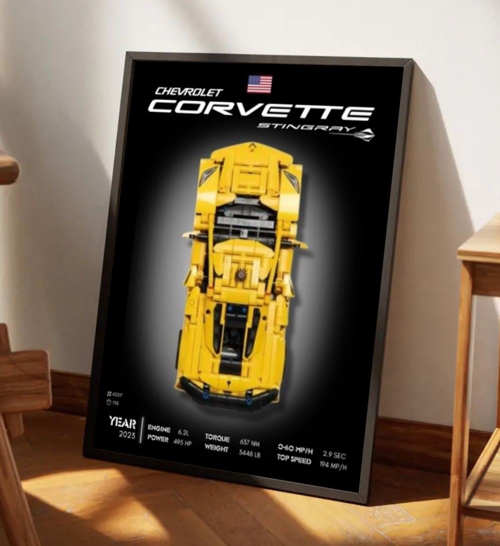 🔥 Chevrolet Corvette Stingray Poster – Compatible with LEGO Technic #42163 & #42205🔥