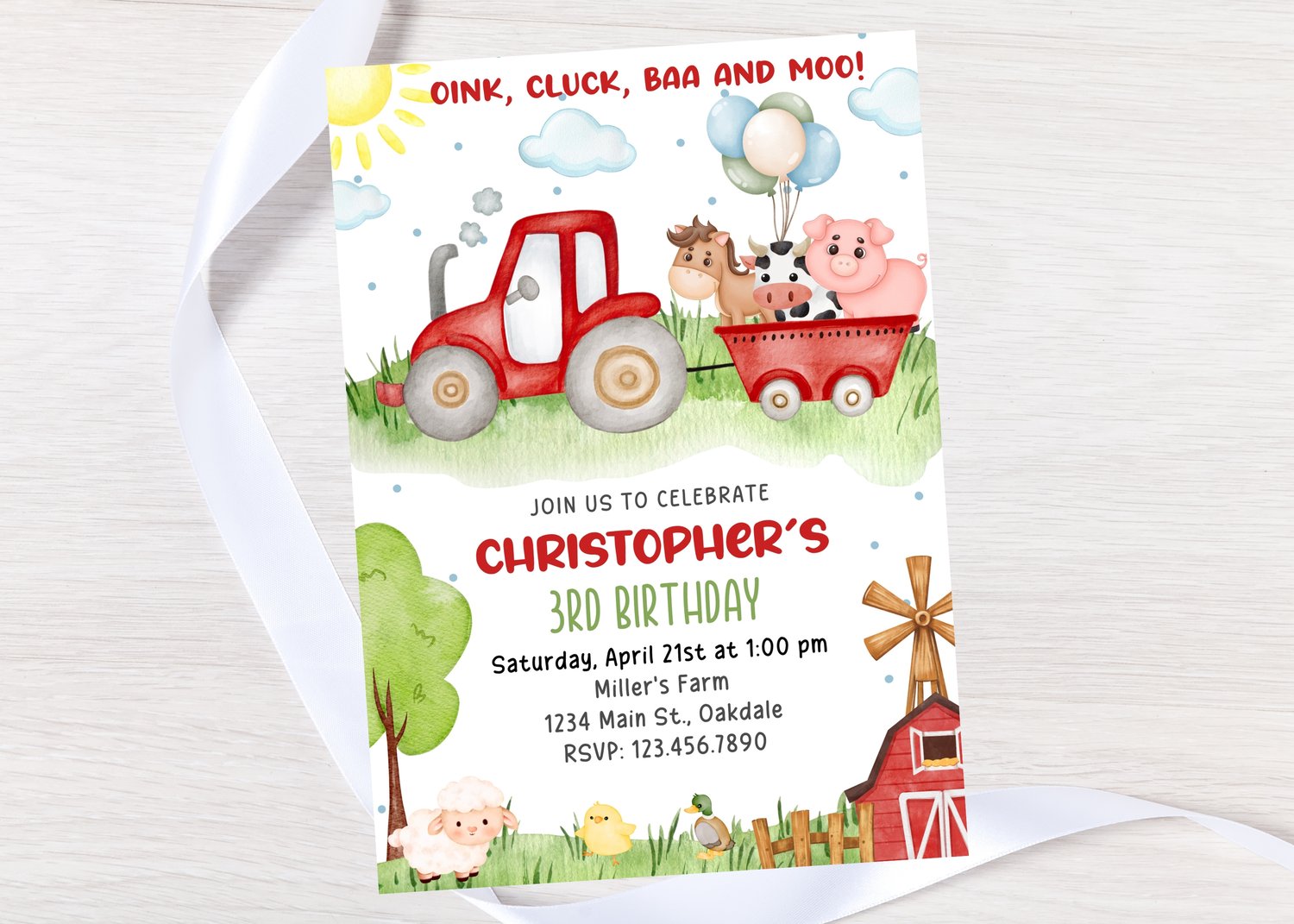 Pink Farm Birthday invitation-instant download