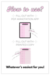 *Fill out with a PDF annotation app, or fill out printed printed copy. Digital download only!*