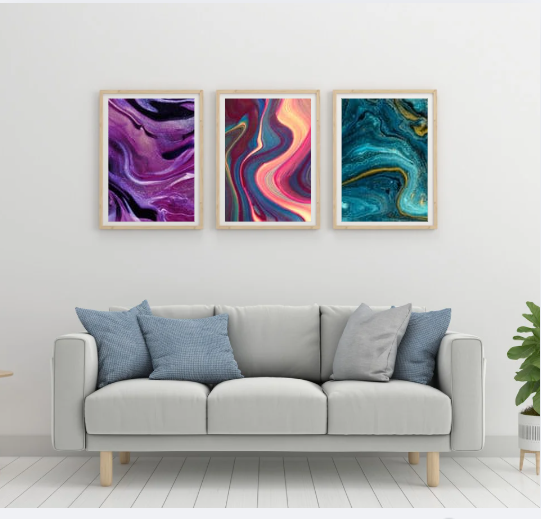 Set of 3 Multi-Colour Abstract Wall Art Prints