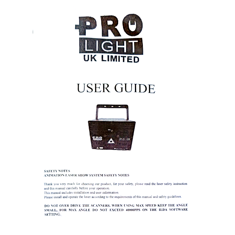 Librería para Freestyler DMX del Láser "RGB 8W" de Pro Light Uk (10-34CH).