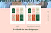 - All affirmation cards are available in English and Spanish (female and male versions), in US letter and A4 page size (you will get different PDF files for each language).