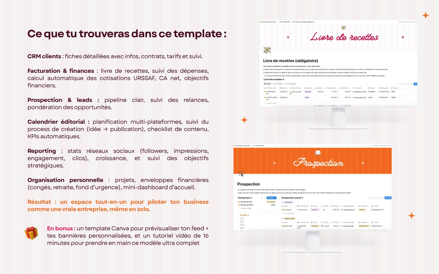 → Résultat : un véritable copilote de ton activité pour gagner du temps, rester organisée et piloter ton business comme une pro.