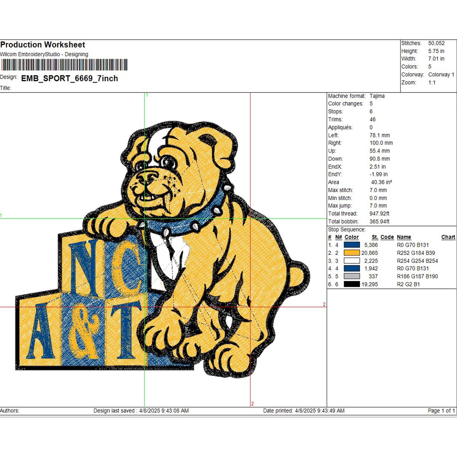 Funny NC Aggies Football Team Mascot Logo Embroidery Designs, NCAA North Carolina A&T Aggies Team Embroidery Designs, NCAA Logo embroidery designs, Digital Download