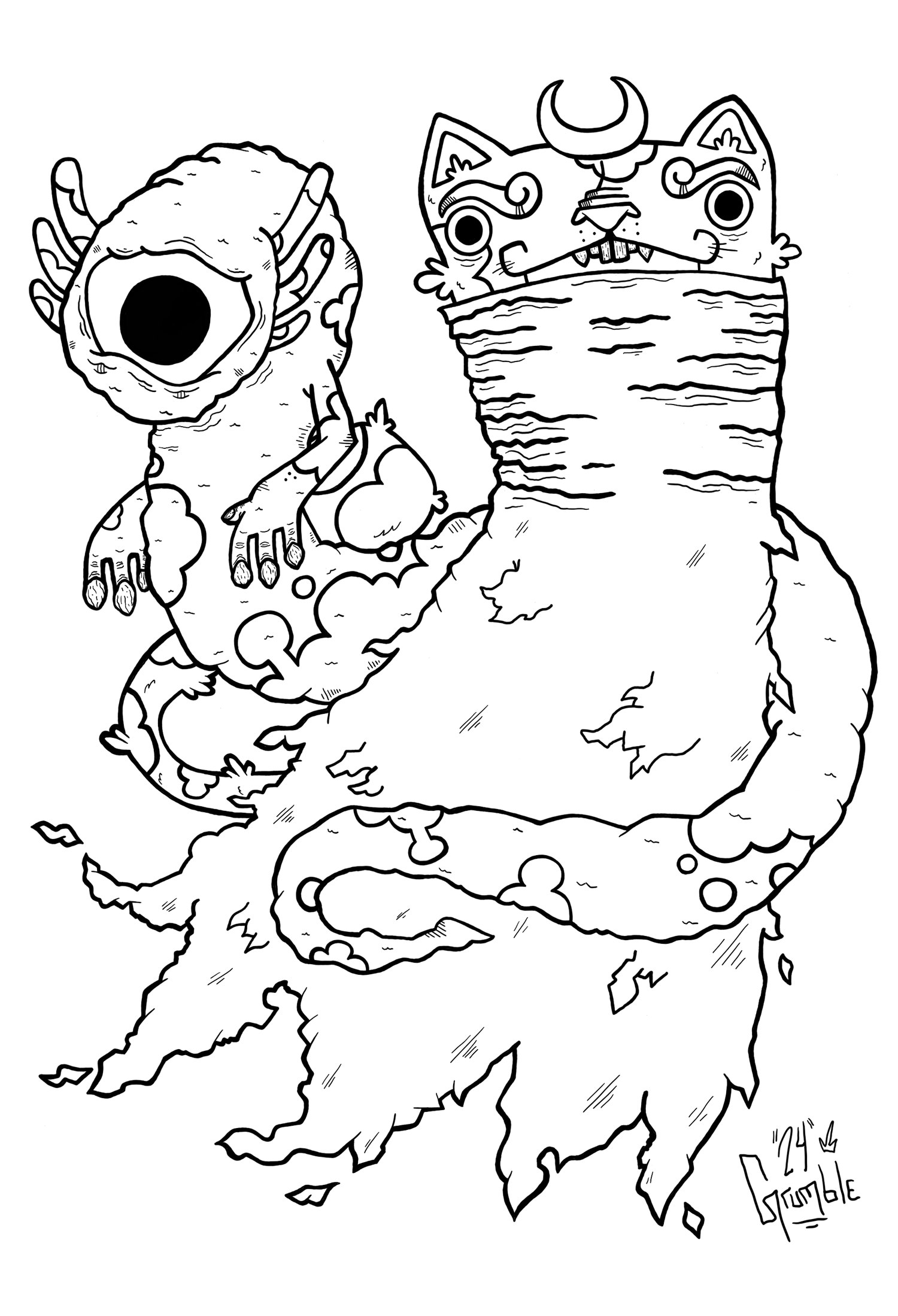 Drawn and designed by Seattle based artist Grumble. The mage Calico Abernathy and his familiar Trevor.