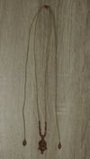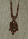 Handmade using high quality brass beads and waxed polyester chord in Brown and Green. Adjustable necklace length.