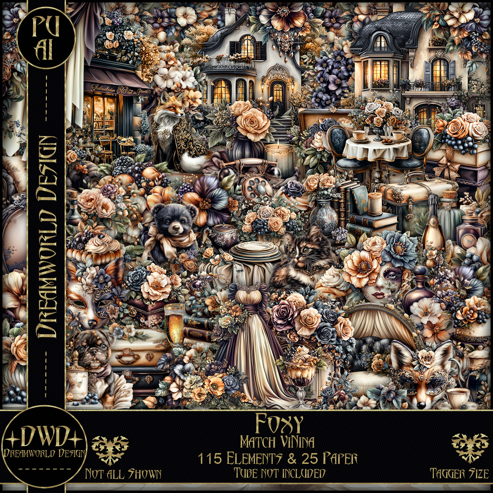 *Foxy* is a tagger-size kit with 115 elements & 25 papers.