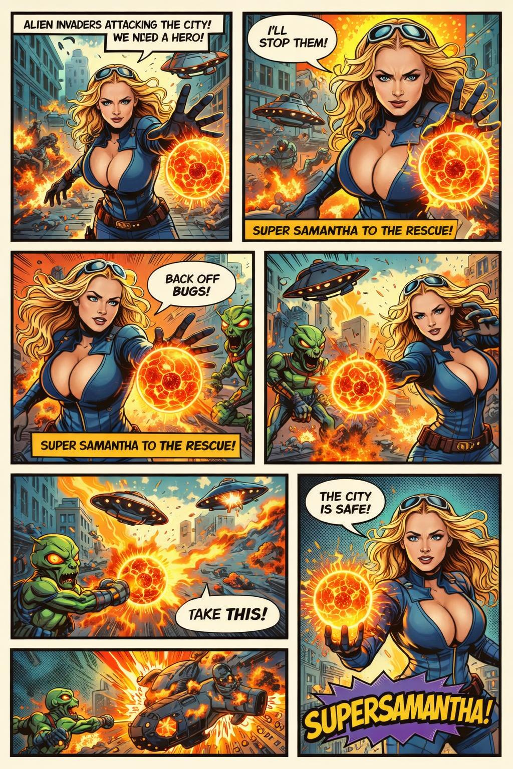 Out of the shadows of crumbling cities and fading legends rises Super Samantha, a beacon of courage and determination in an age desperate for hope. Neither forged by ancient prophecy nor born of privilege, she stands as the embodiment of strength shaped by choice, a heroine who dares to step forward when others stand aside.