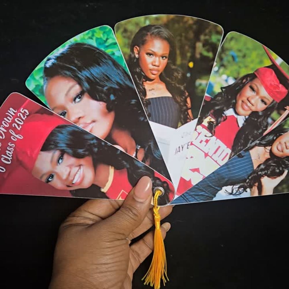 Stay cool and celebrate in style with custom 6-inch Graduation Fans! Perfect for ceremonies or party favors, these fans feature personalized photos, school colors, and messages to make your grad shine.