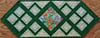This tablerunner can be made with a plain center to showcase quilting stitches, or fussy cut a print. Match the small squares to the center, or use a different print. You can use fat quarters, or quarter yard cuts. If you use a stripe for the framing strips you'll want to match the stripes across the squares.