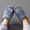 The unstretched finished foot length of these slippers is 7 (8, 9, 9¾)”/ 17.5 (20, 22.5, 24)cm. S, M, L and XL sizes stretch to fit women’s US shoe sizes 4-5, 6-8, 9- 10, 11-12 or men’s US shoe sizes N/A, (6-7.5, 8-9, 9.5- 11).