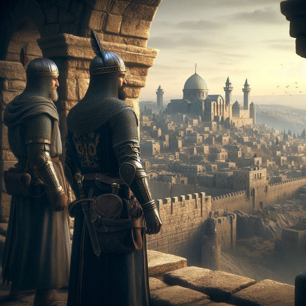Step into the heart of the Holy Land and explore the profound dialogues between two of history's most legendary figures. "Echoes of Jerusalem" transports you to a time of epic battles and noble quests, where Saladin, the noble Sultan of Egypt and Syria, and Richard the Lionheart, the valiant King of England, stood on the precipice of history, engaged in a quest for peace amidst the clamor of war.