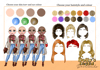 three different skin tones, three eye colours and 14 hair colours)