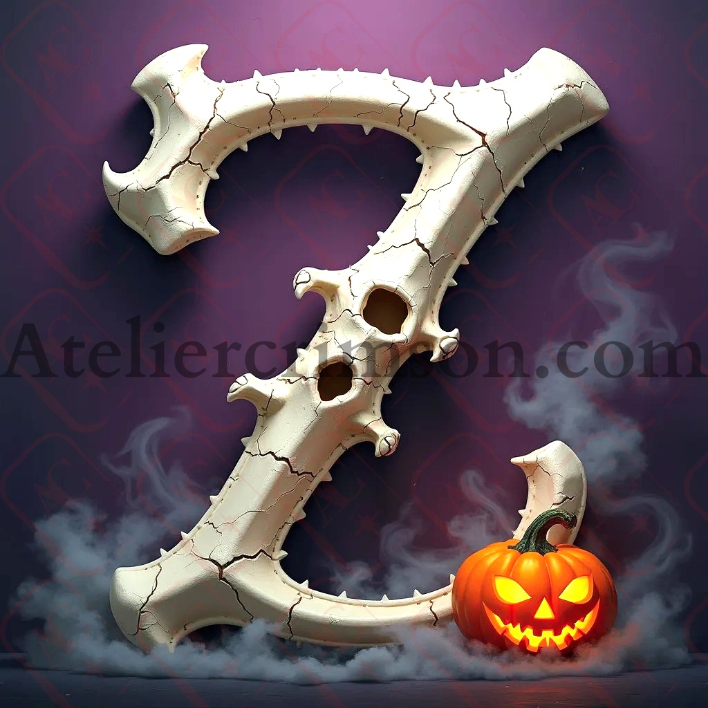 The letter Z spooky character skull Halloween Discover our Spooky Skull Alphabet! Each character is a 3D masterpiece of bone and shadow. Perfect for Halloween designs, gothic projects, or unique wall art. 💀✨ Click to download this high-resolution character and elevate your creations with haunting elegance!